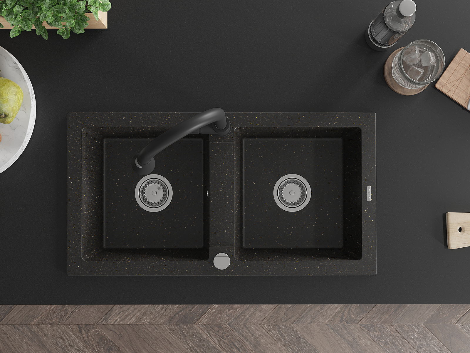Mexen Mario νεροχύτης γρανίτη 2 θαλάμων με μπαταρία κουζίνας Elia,