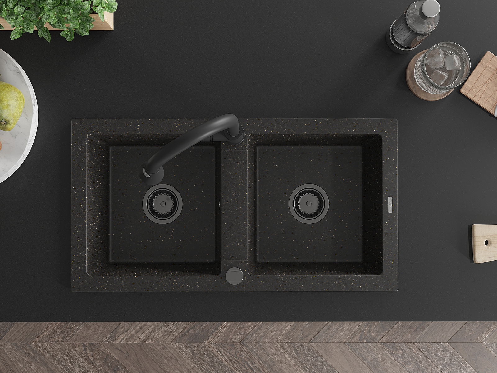 Mexen Mario Νεροχύτης γρανίτης 2-θάλαμος με μπαταρία κουζίνας Elia,