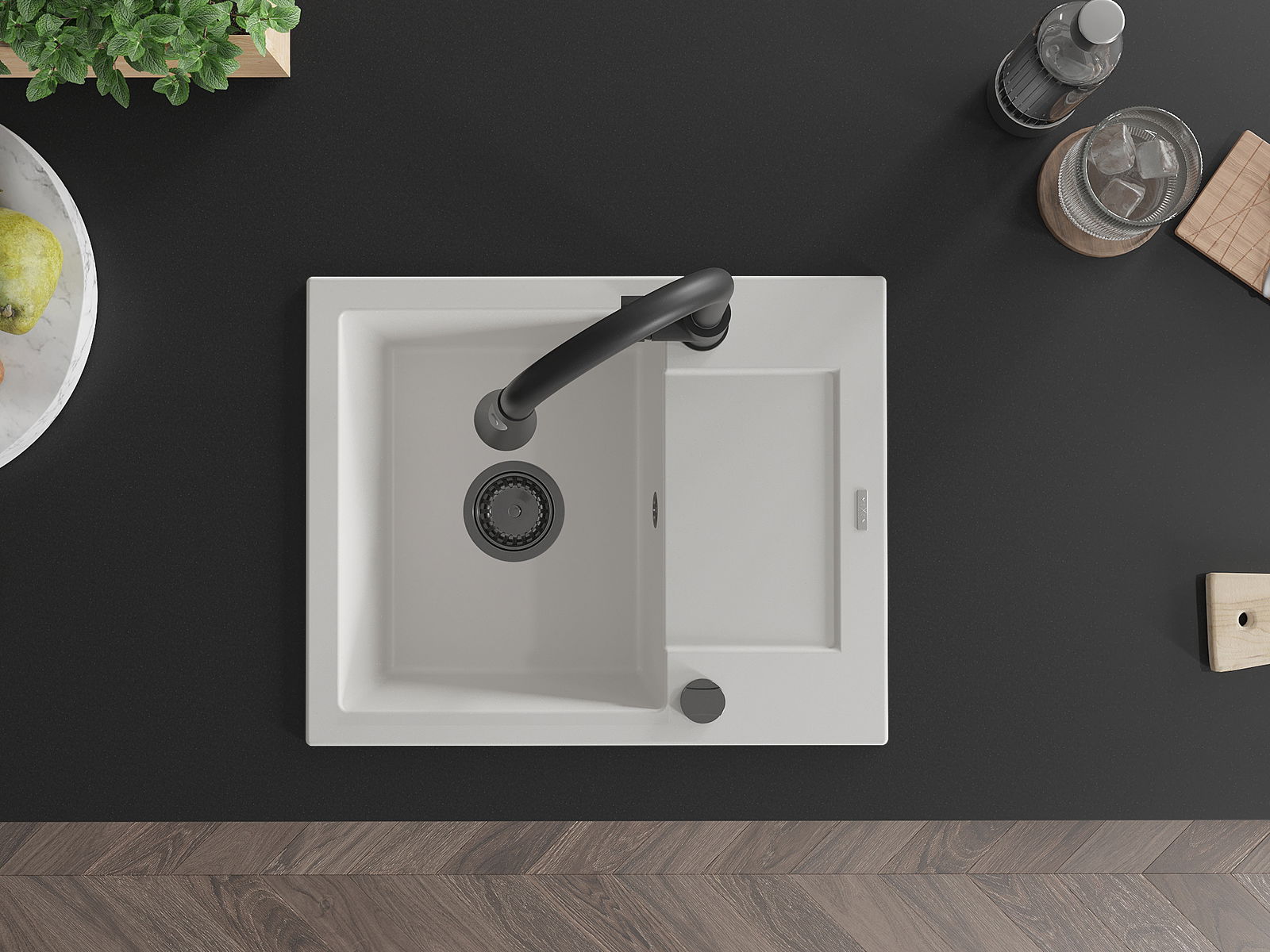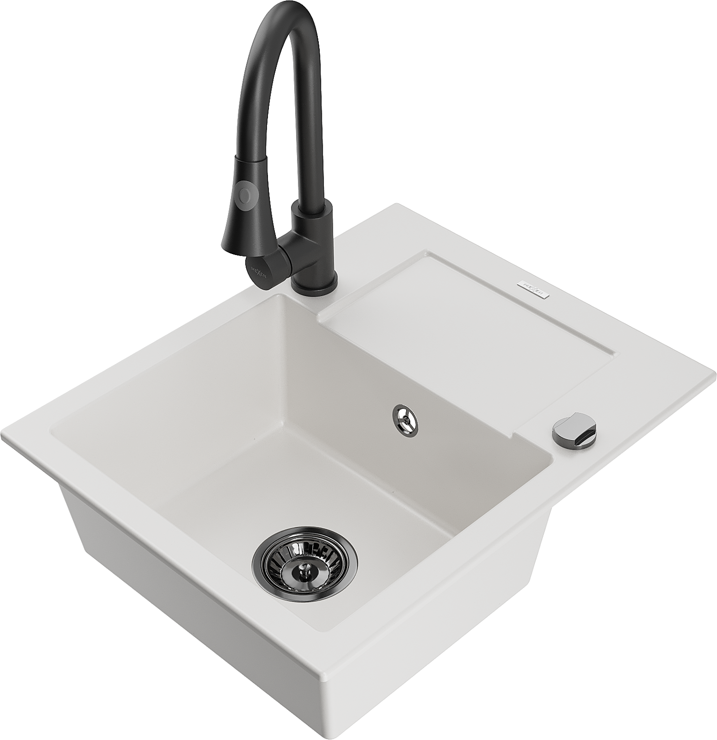 Mexen Enzo νεροχύτης γρανίτης 1 θαλάμου με στραγγιστήρι και μπαταρία