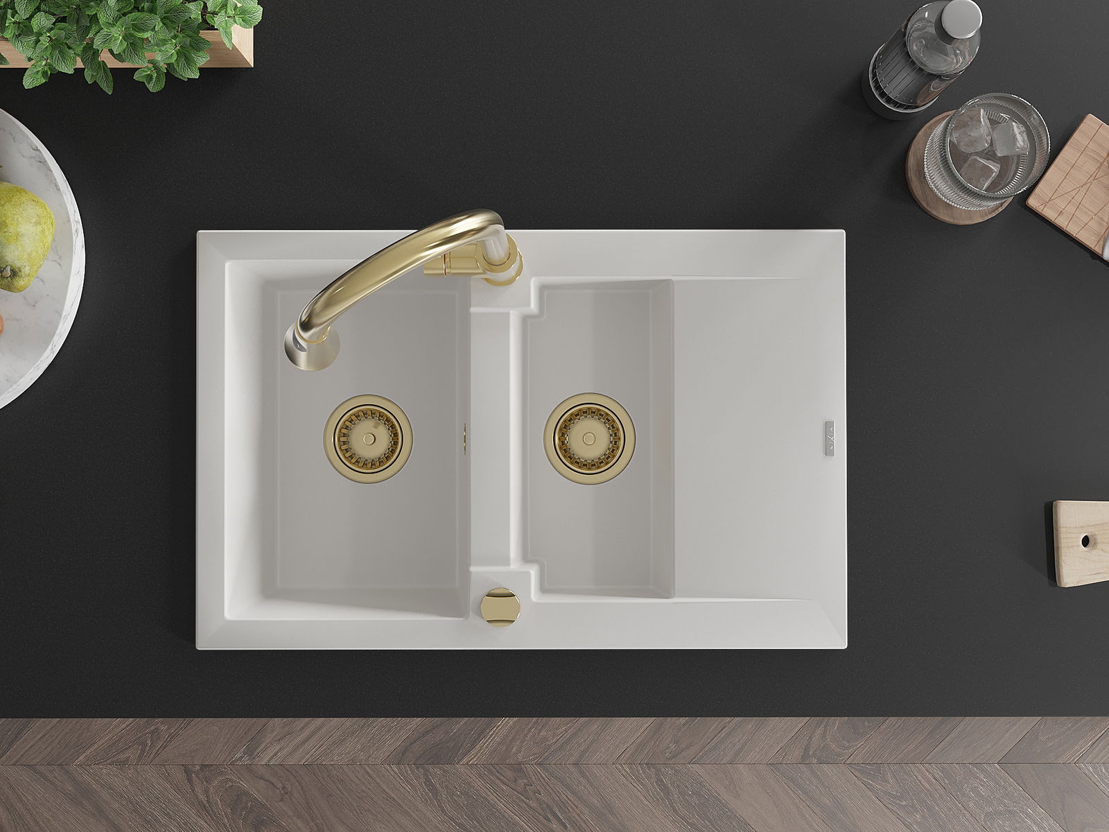 Mexen Gaspar νεροχύτης γρανίτης 1,5-θάλαμος με στραγγιστήρι και μπαταρία