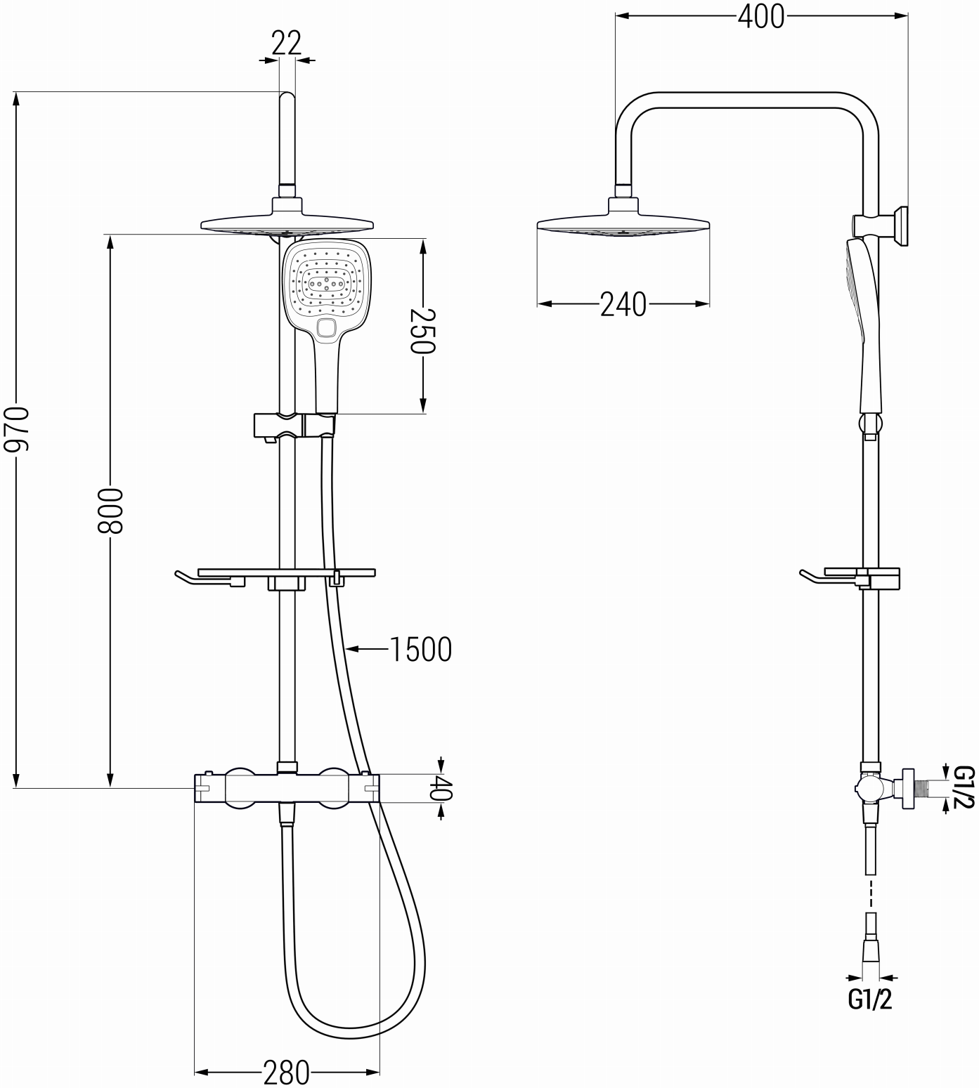 Μέγεθος κεφαλής ντους: ø240 mm