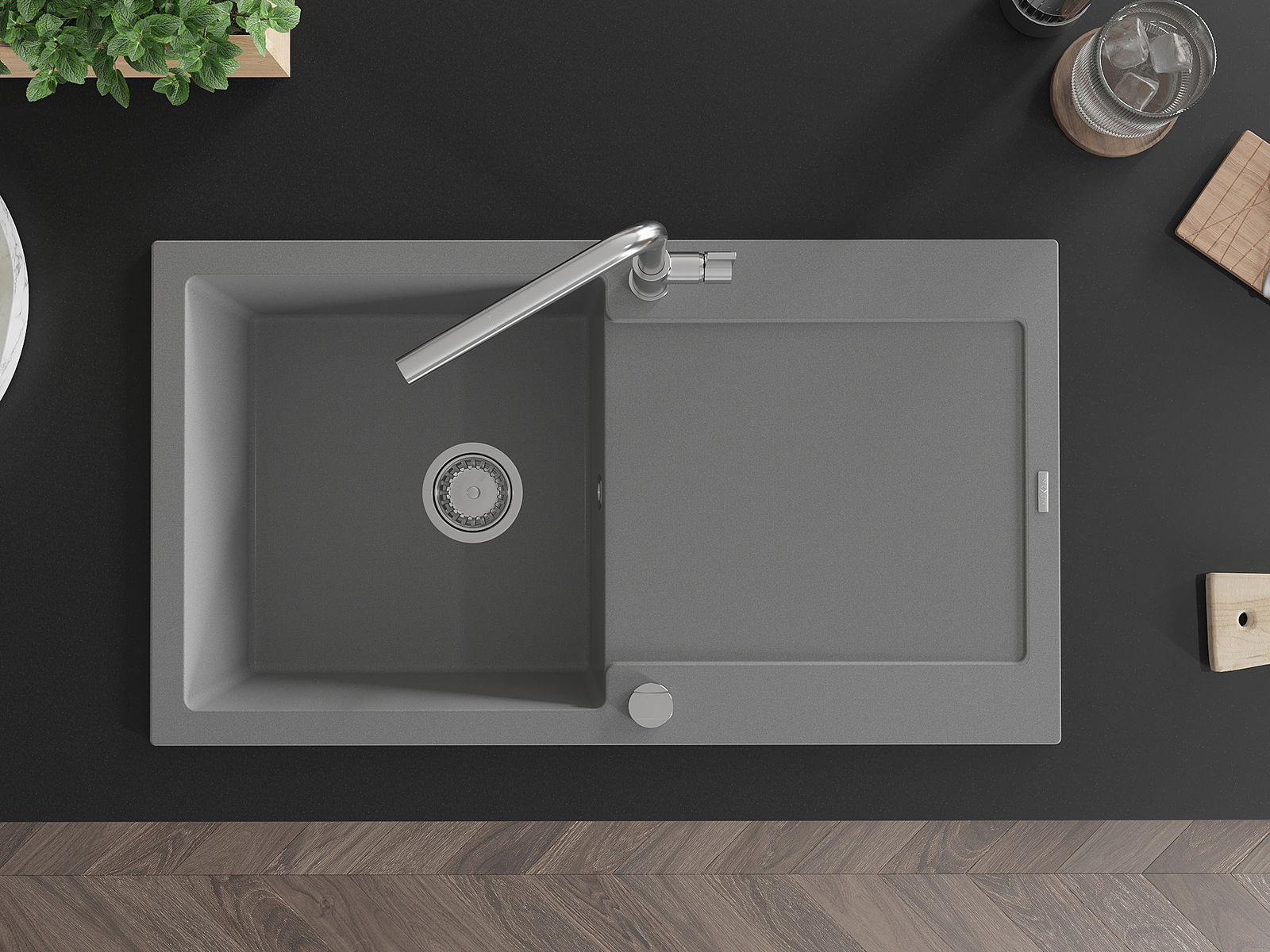 Ο νεροχύτης κατασκευάστηκε από υψηλής ποιότητας γρανίτη. Αποτελεί μια κομψή, και κυρίως πρακτική προσθήκη για κάθε κουζίνα, ανεξάρτητα από το στυλ της. Η υψηλή ποιότητα και η αντοχή του γρανίτη εξασφαλίζουν πολυετή χρήση.