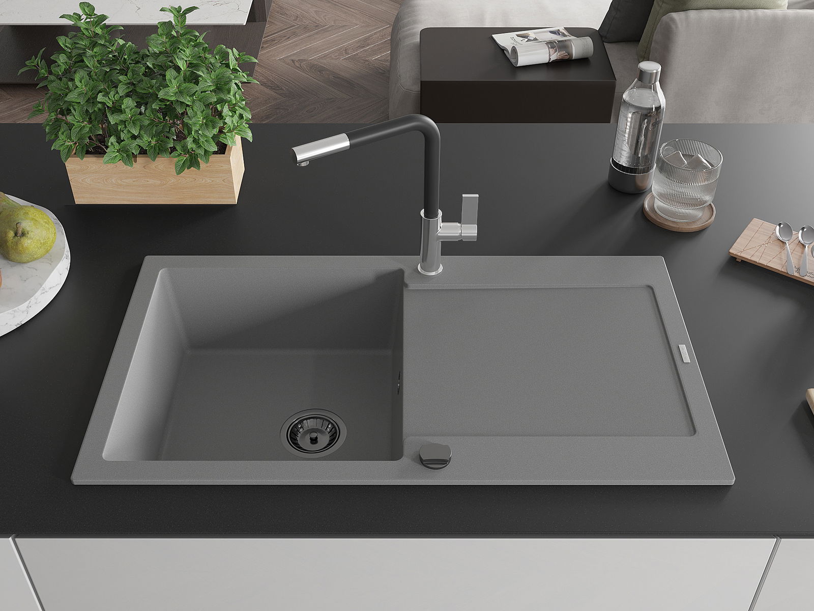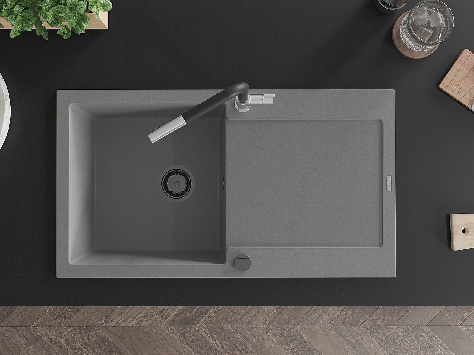 Ο νεροχύτης κατασκευάστηκε από υψηλής ποιότητας γρανίτη. Αποτελεί μια κομψή, και κυρίως πρακτική προσθήκη για κάθε κουζίνα, ανεξάρτητα από το στυλ της. Η υψηλή ποιότητα και η αντοχή του γρανίτη εξασφαλίζουν πολυετή χρήση.
