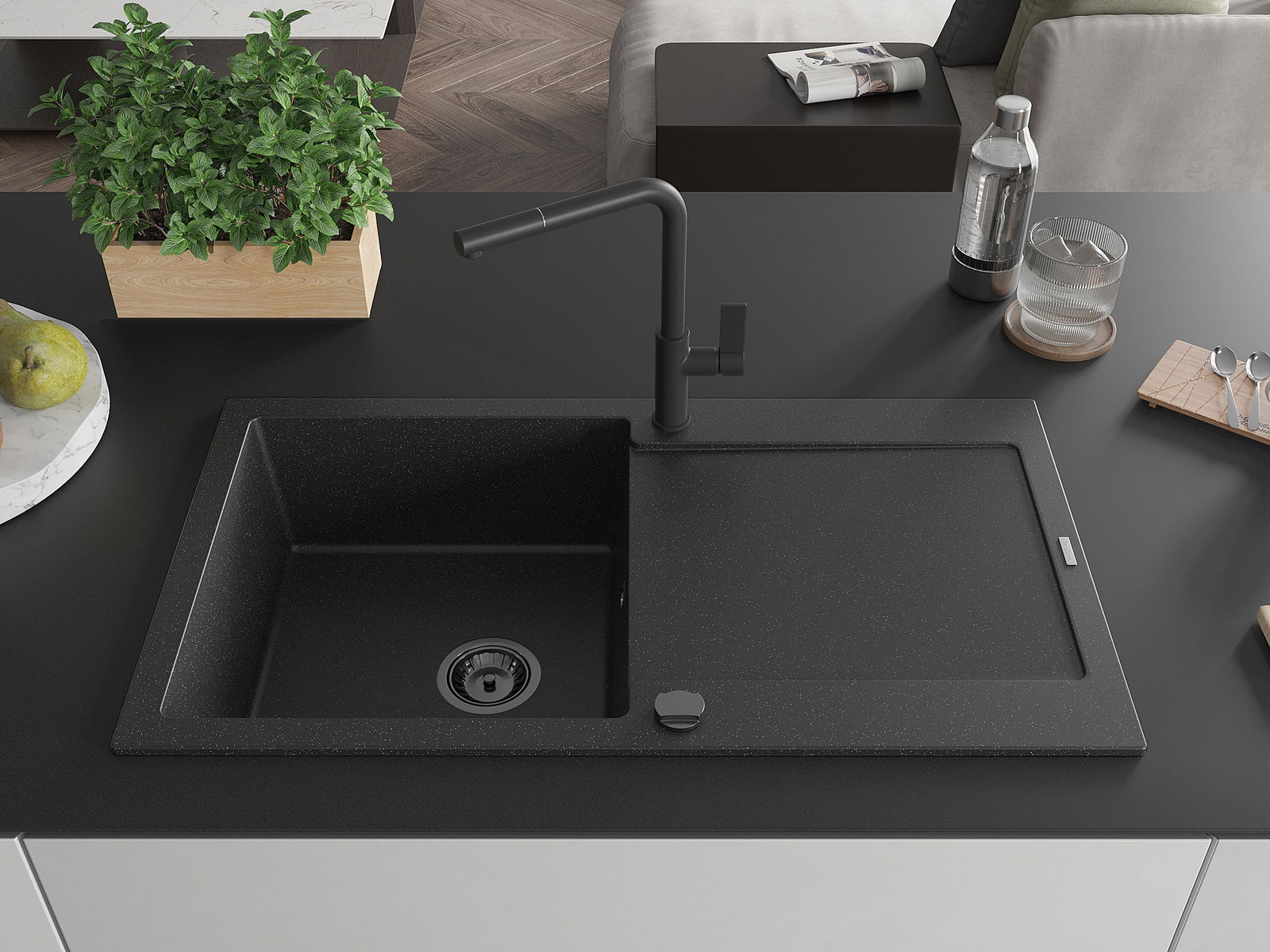 Mexen Leo νεροχύτης γρανίτης 1-διαμερίσματος με αποστραγγιστήρα και