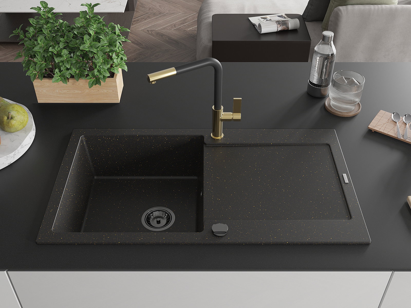 Mexen Leo νεροχύτης γρανίτη 1 θάλαμος με στραγγιστήρι και μπαταρία