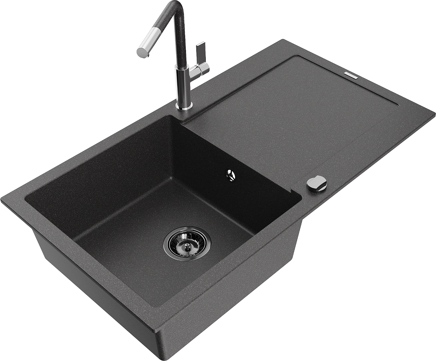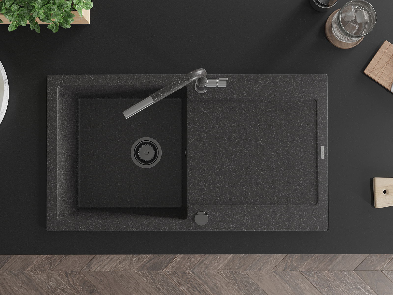 Mexen Leo νεροχύτης γρανίτης 1 θαλάμου με αποστραγγιστήρα και μπαταρία