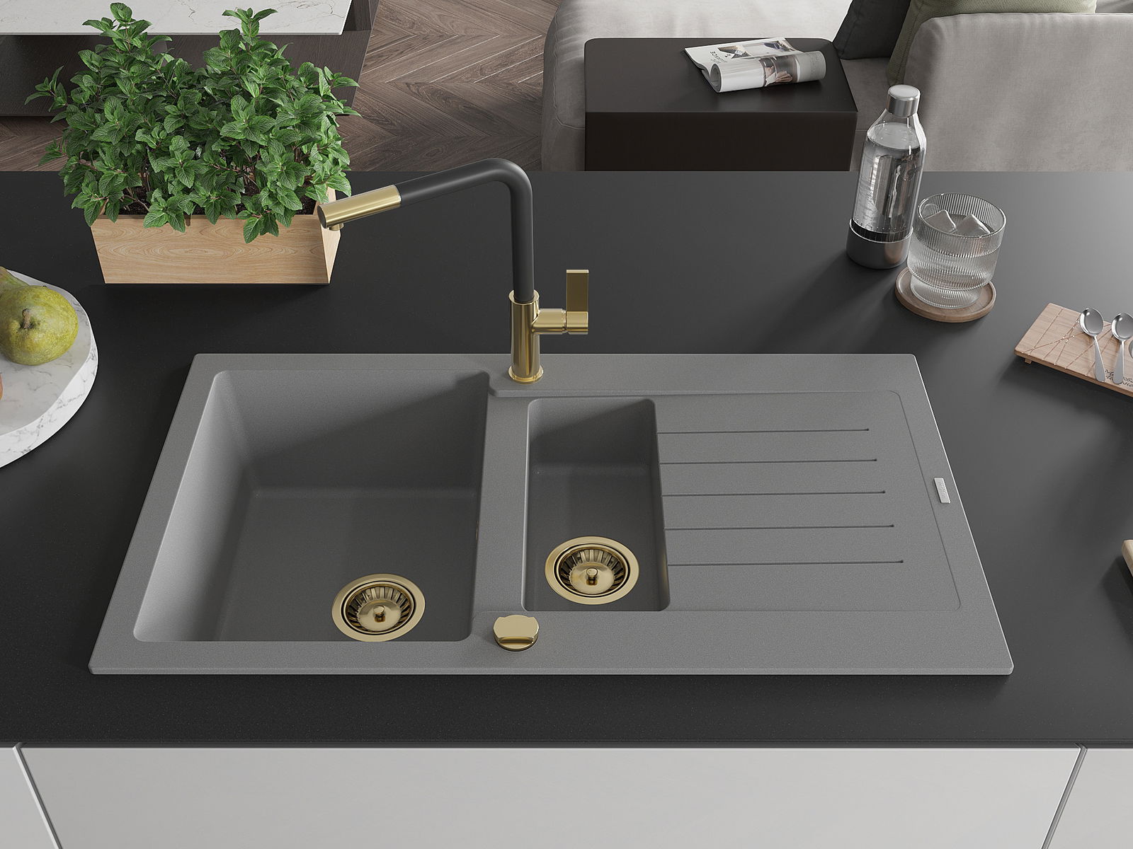 Mexen Matias Γρανιτένιος νεροχύτης 1,5 θαλάμων με αποστράγγιση και μπαταρία
