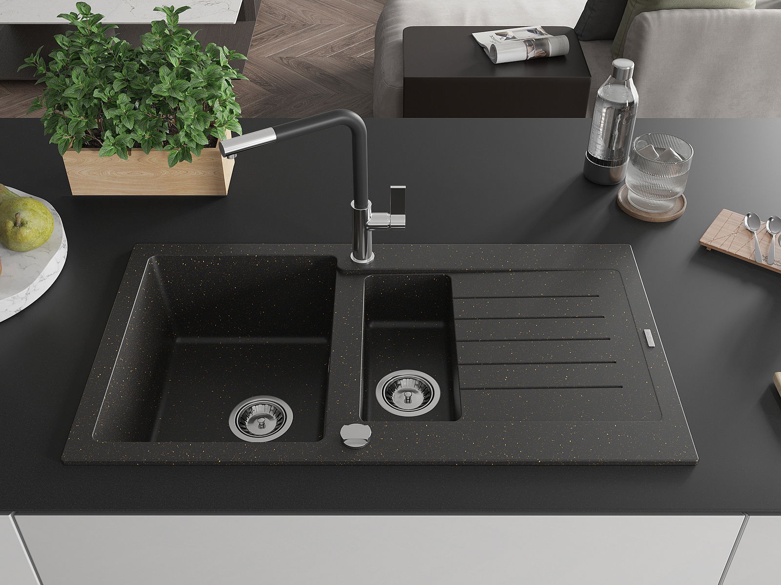 Mexen Matias Γρανιτένος νεροχύτης 1,5 θαλάμων με αποστραγγιστήρα και