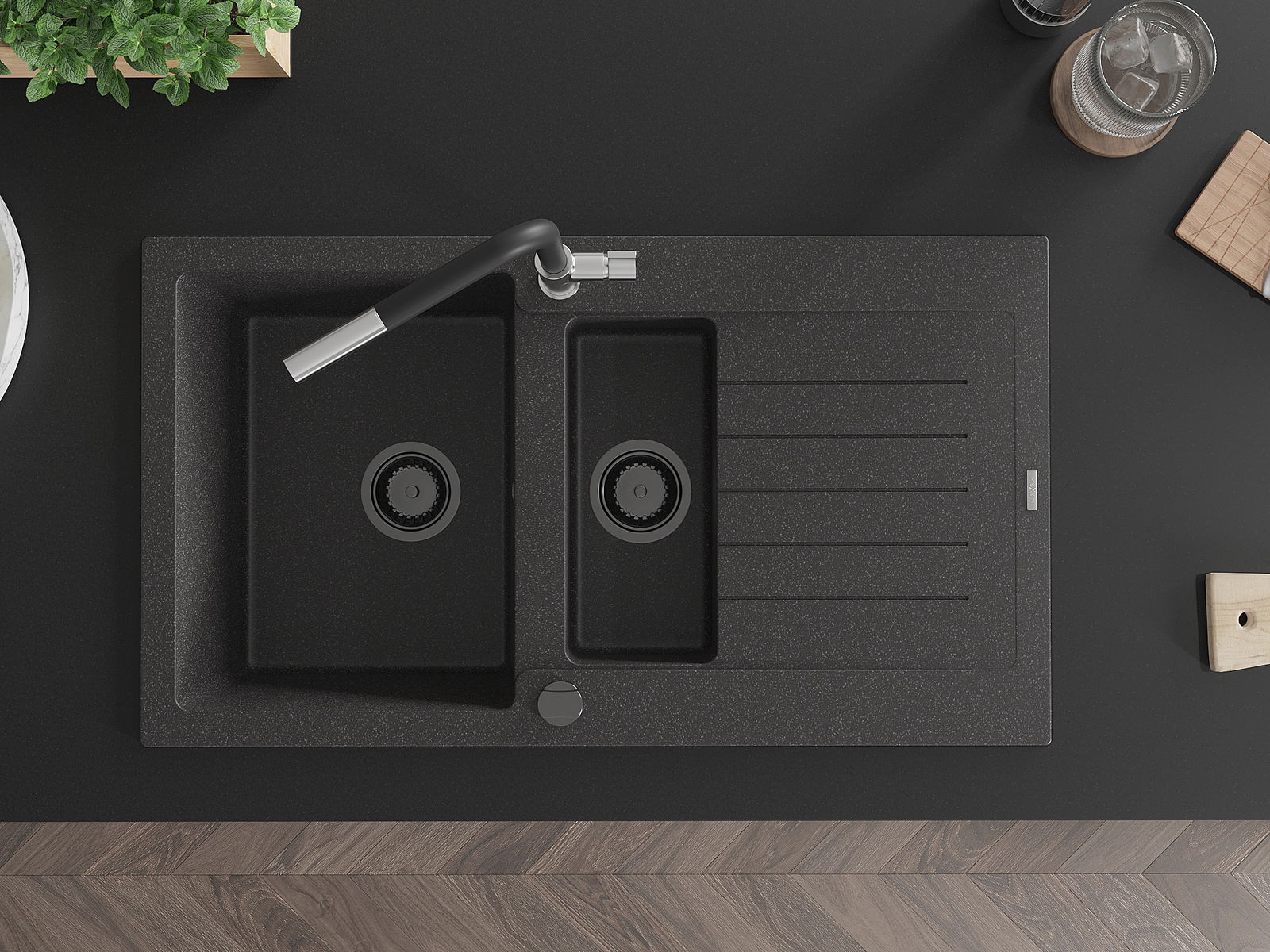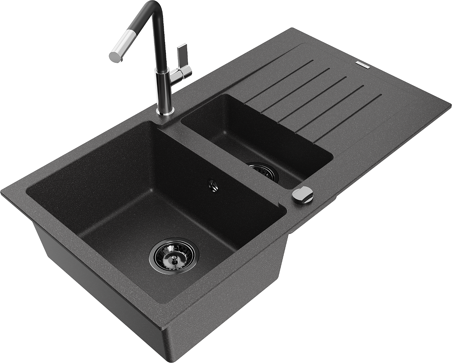 Mexen Matias νεροχύτης γρανίτης 1,5-θαλάμων με αποστραγγιστήρα και μπαταρία