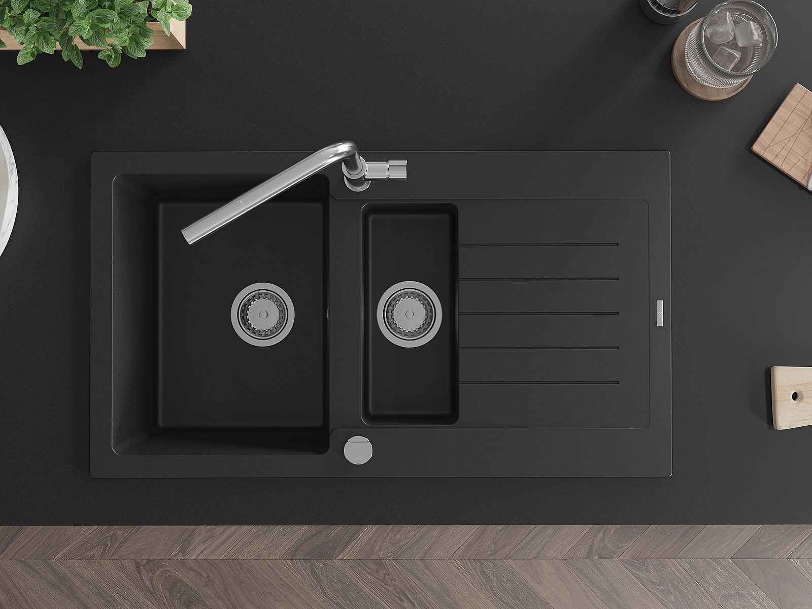 Mexen Matias νεροχύτης γρανίτη 1,5-θαλάμου με αποστράγγιση και μπαταρία