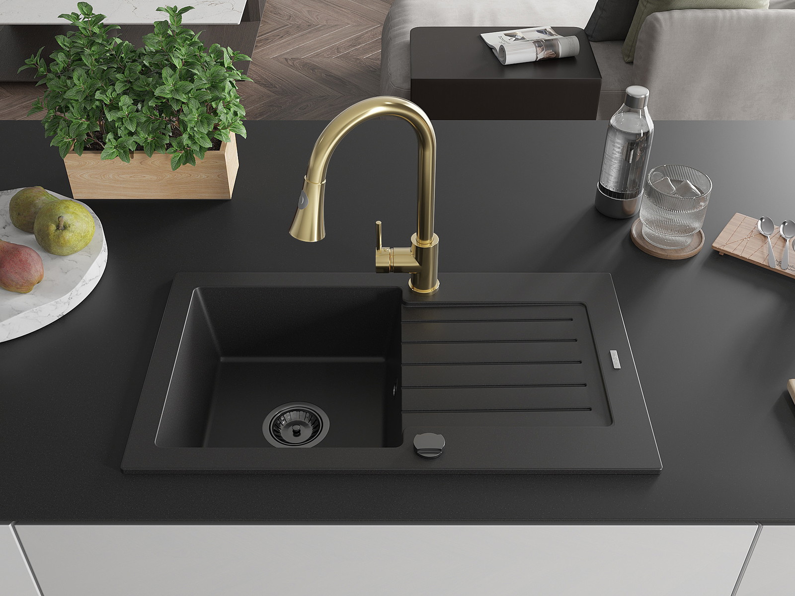 Mexen Pablo νεροχύτης γρανίτης 1-διαμέρισμα με στραγγιστήρα και μπαταρία