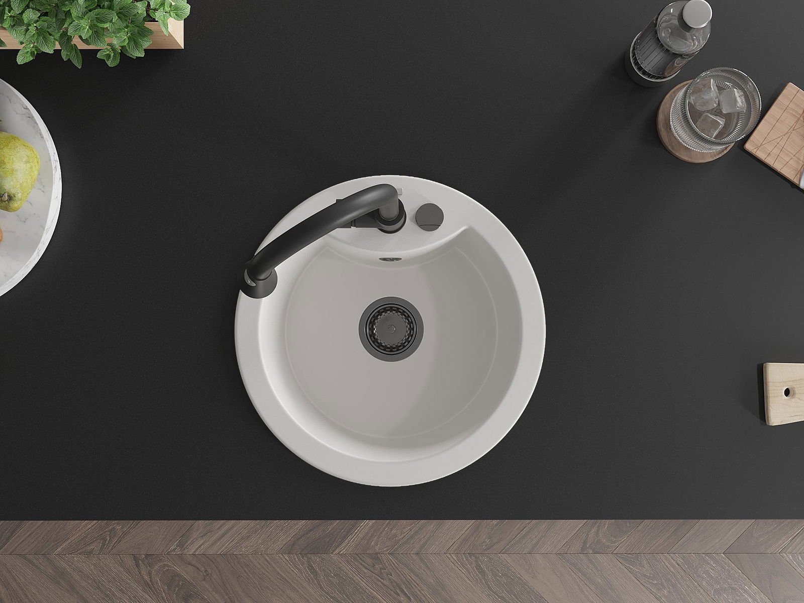 Ο νεροχύτης κατασκευάστηκε από υψηλής ποιότητας γρανίτη. Αποτελεί μια κομψή, και κυρίως πρακτική προσθήκη για κάθε κουζίνα, ανεξάρτητα από το στυλ της. Η υψηλή ποιότητα και η αντοχή του γρανίτη εξασφαλίζουν πολυετή χρήση.