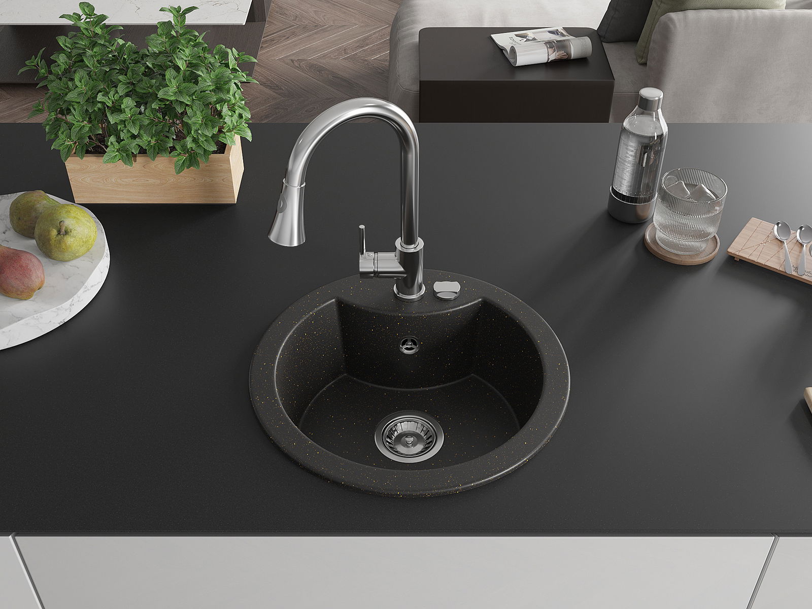 Mexen Diego νεροχύτης γρανίτης μονής λεκάνης με μπαταρία κουζίνας Elia,