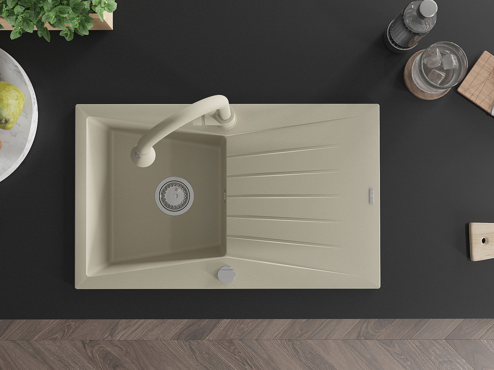 Ο νεροχύτης κατασκευάστηκε από υψηλής ποιότητας γρανίτη. Αποτελεί μια κομψή, και κυρίως πρακτική προσθήκη για κάθε κουζίνα, ανεξάρτητα από το στυλ της. Η υψηλή ποιότητα και η αντοχή του γρανίτη εξασφαλίζουν πολυετή χρήση.