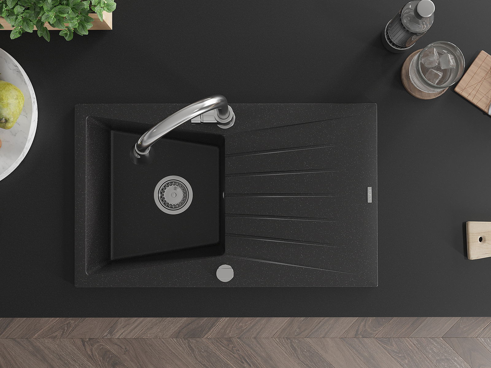 Mexen Cesar νεροχύτης γρανίτης 1-θάλαμος με στραγγιστήρι και μπαταρία