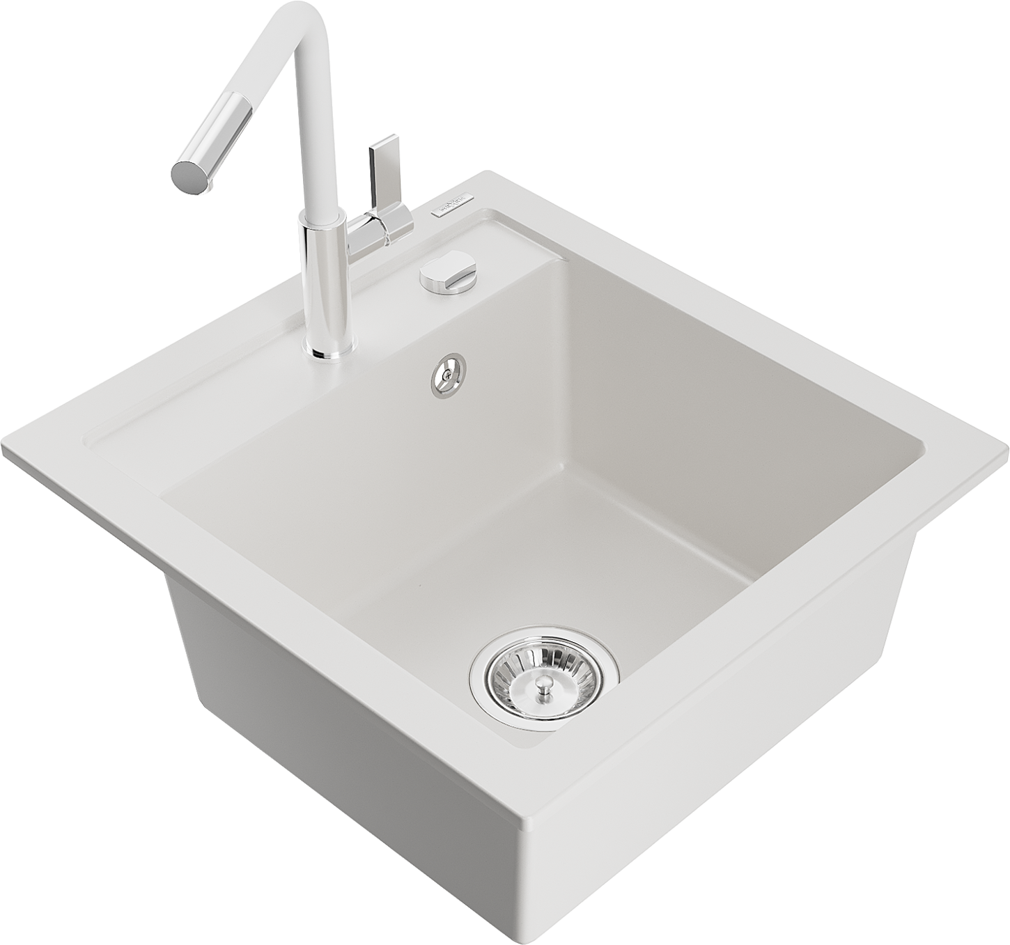 Mexen Vito νεροχύτης γρανίτης μονόκλινος με μπαταρία κουζίνας Flora, λευκός