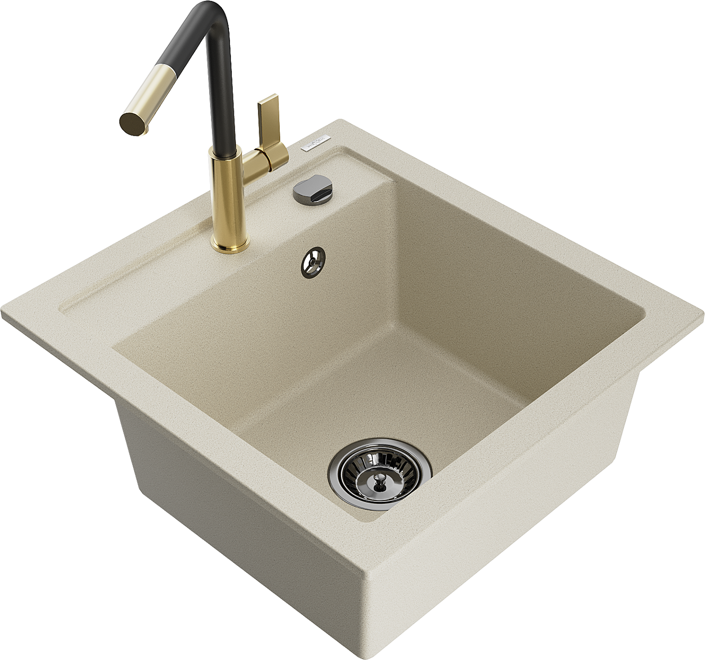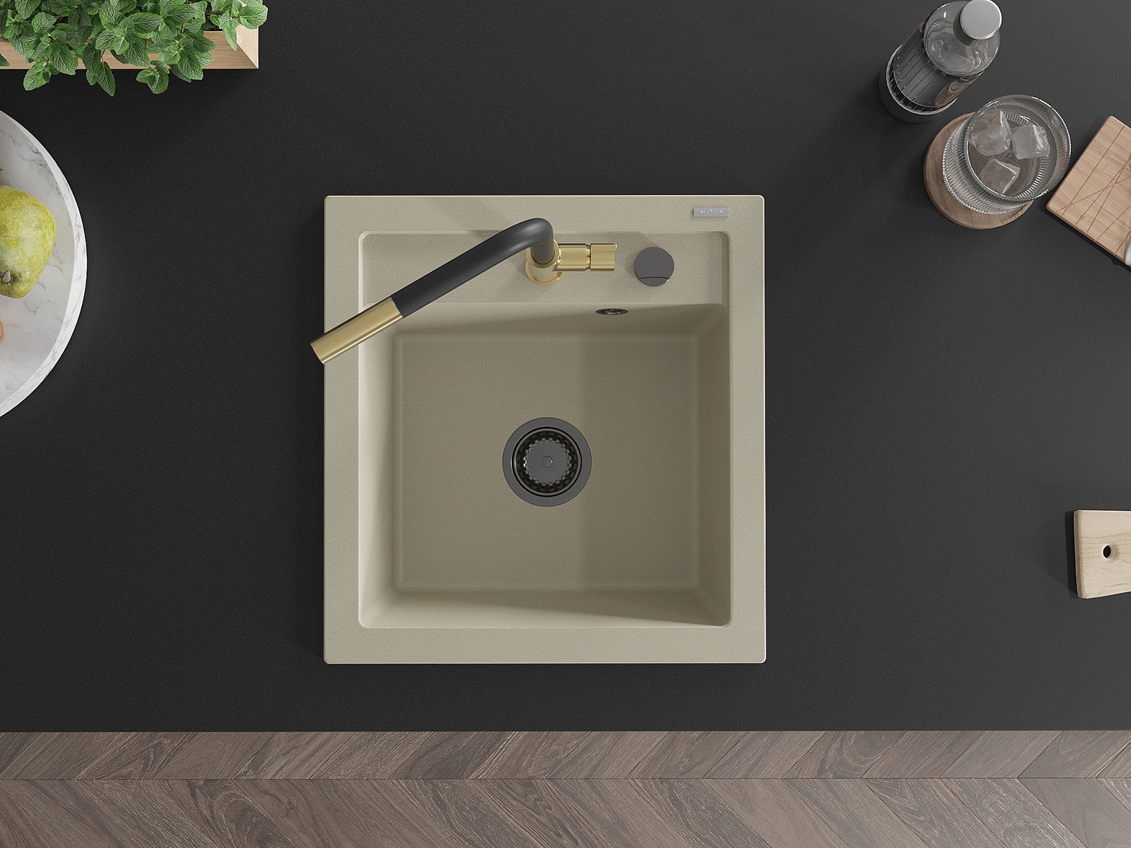 Mexen Vito νεροχύτης γρανίτη μονόχωρος με μπαταρία κουζίνας Flora, μπεζ
