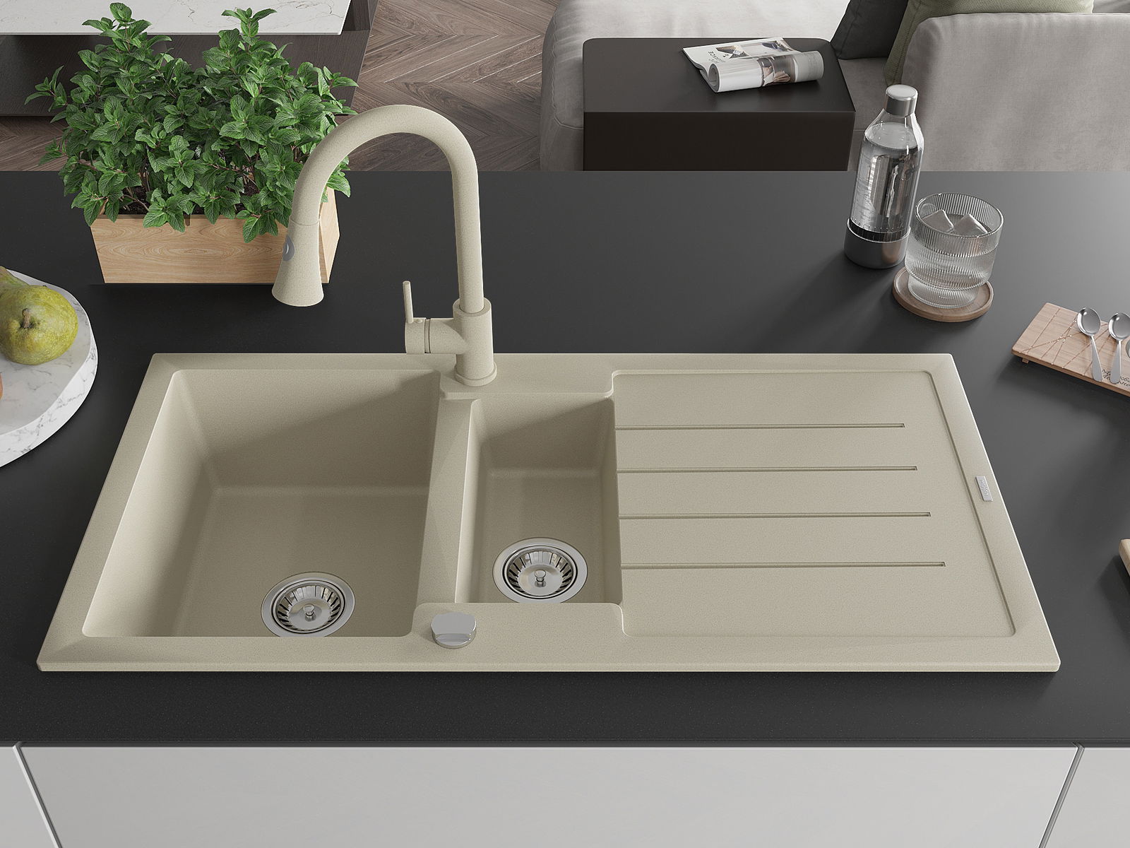 Mexen Andres νεροχύτης από γρανίτη 1,5 θάλαμος με αποστράγγιση και κουζινική