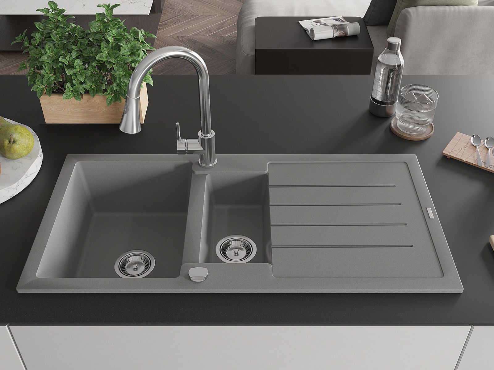 Ο νεροχύτης κατασκευάστηκε από υψηλής ποιότητας γρανίτη. Αποτελεί μια κομψή, και κυρίως πρακτική προσθήκη για κάθε κουζίνα, ανεξάρτητα από το στυλ της. Η υψηλή ποιότητα και η αντοχή του γρανίτη εξασφαλίζουν πολυετή χρήση.