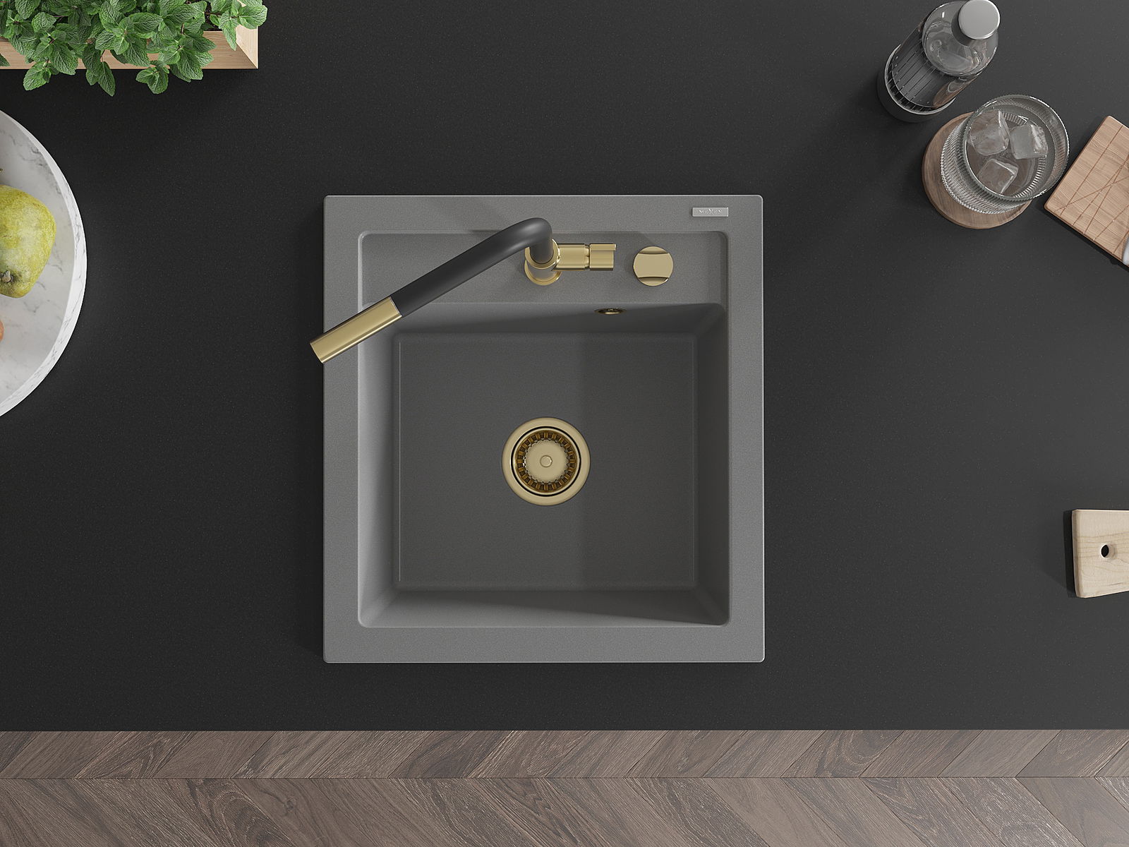 Mexen Vito νεροχύτης από γρανίτη με 1 θάλαμο και μπαταρία κουζίνας Flora, γκρι