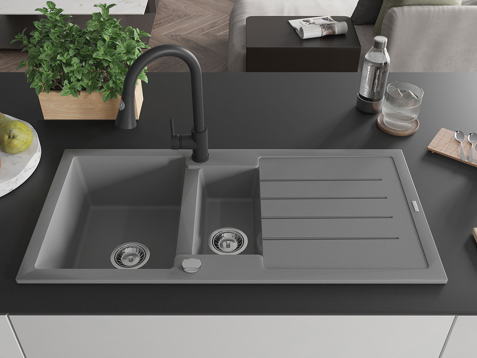 Mexen Andres Γρανιτένιος νεροχύτης 1,5-κοιλότητας με αποστραγγιστήρα και