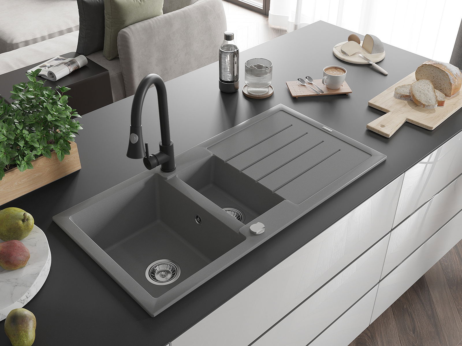 Ο νεροχύτης κατασκευάστηκε από υψηλής ποιότητας γρανίτη. Αποτελεί μια κομψή, και κυρίως πρακτική προσθήκη για κάθε κουζίνα, ανεξάρτητα από το στυλ της. Η υψηλή ποιότητα και η αντοχή του γρανίτη εξασφαλίζουν πολυετή χρήση.