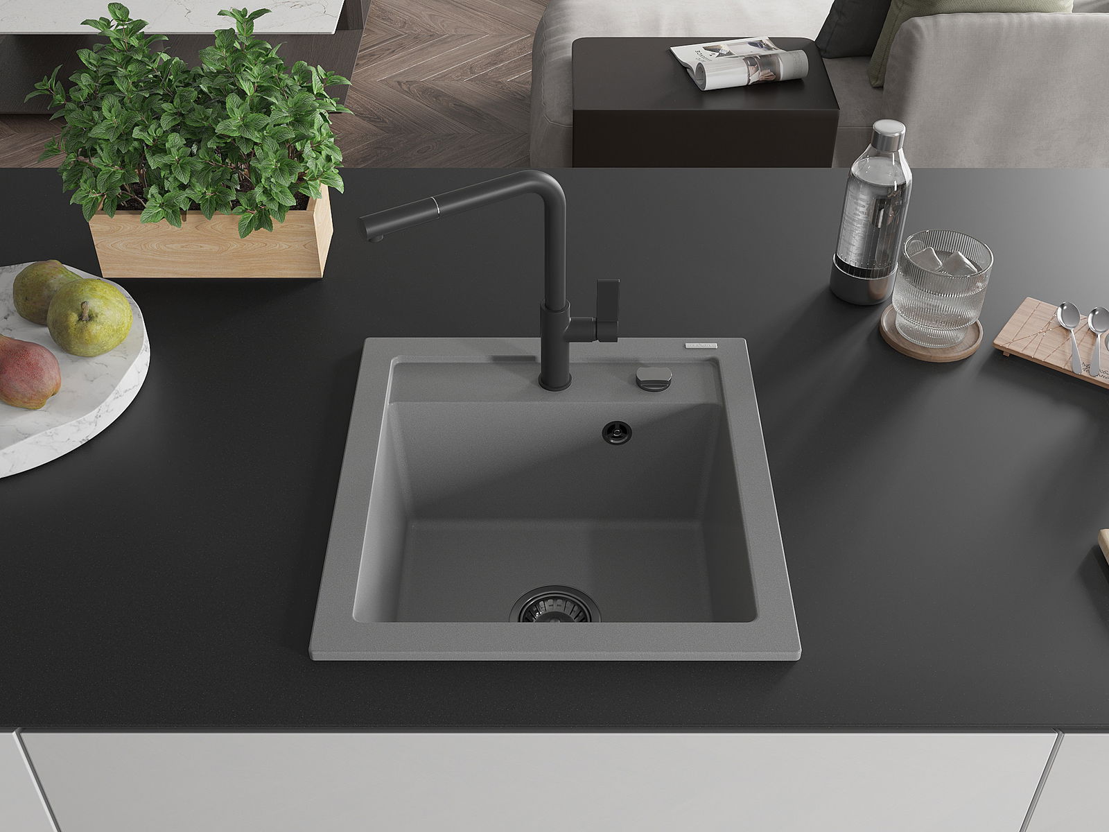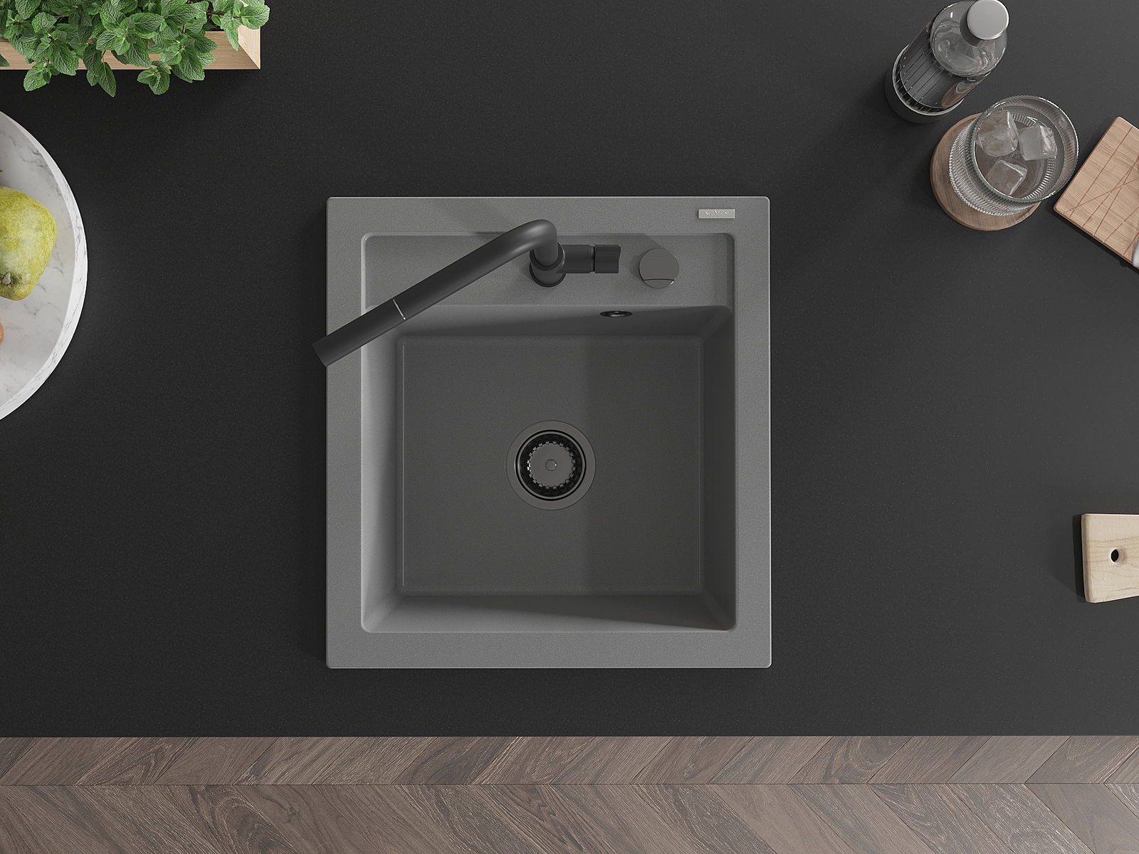 Mexen Vito νεροχύτης γρανίτης μονός με μπαταρία κουζίνας Flora, γκρι