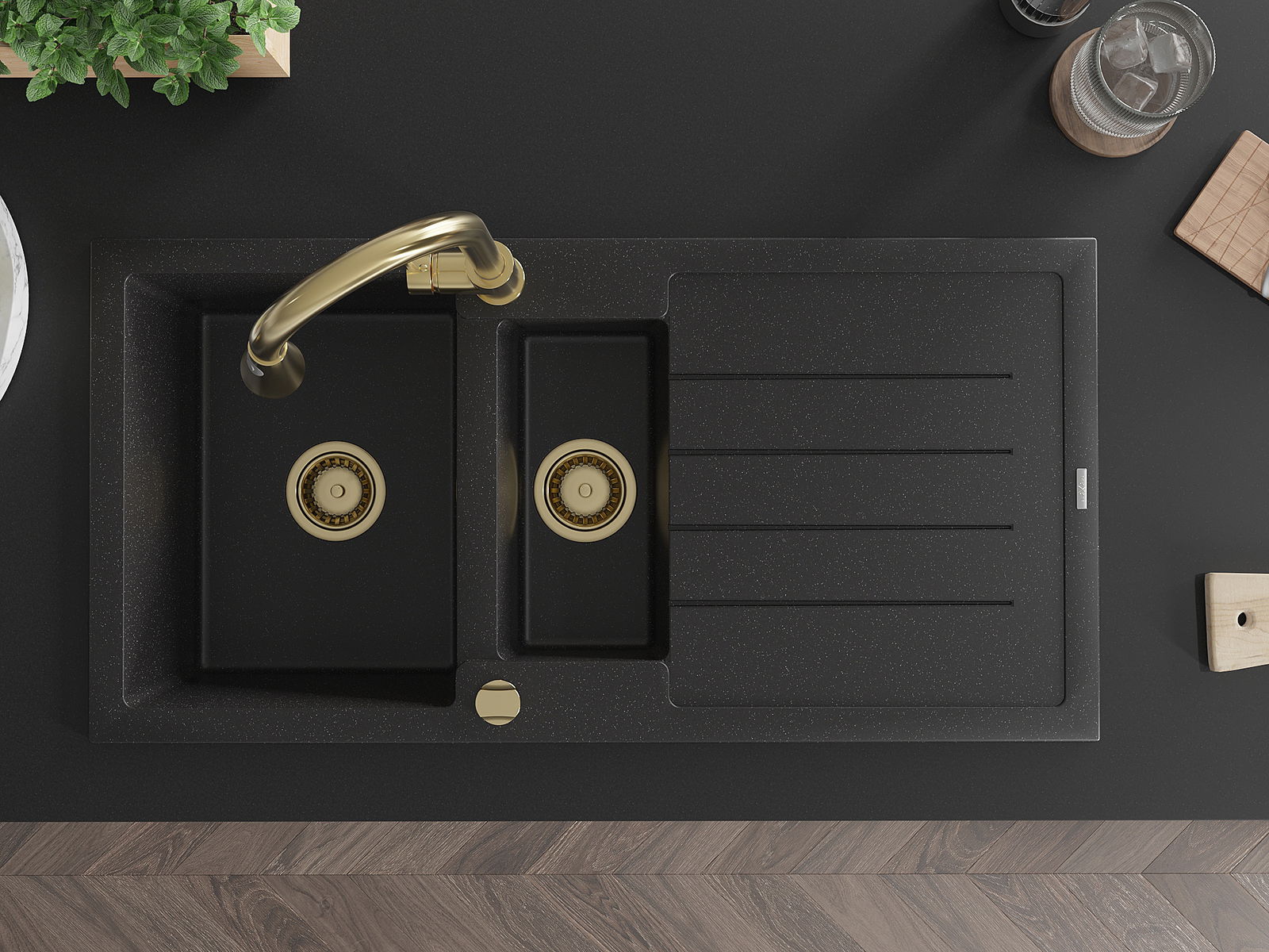 Mexen Andres νεροχύτης γρανίτης 1,5-θαλάμων με στραγγιστήρι και μπαταρία