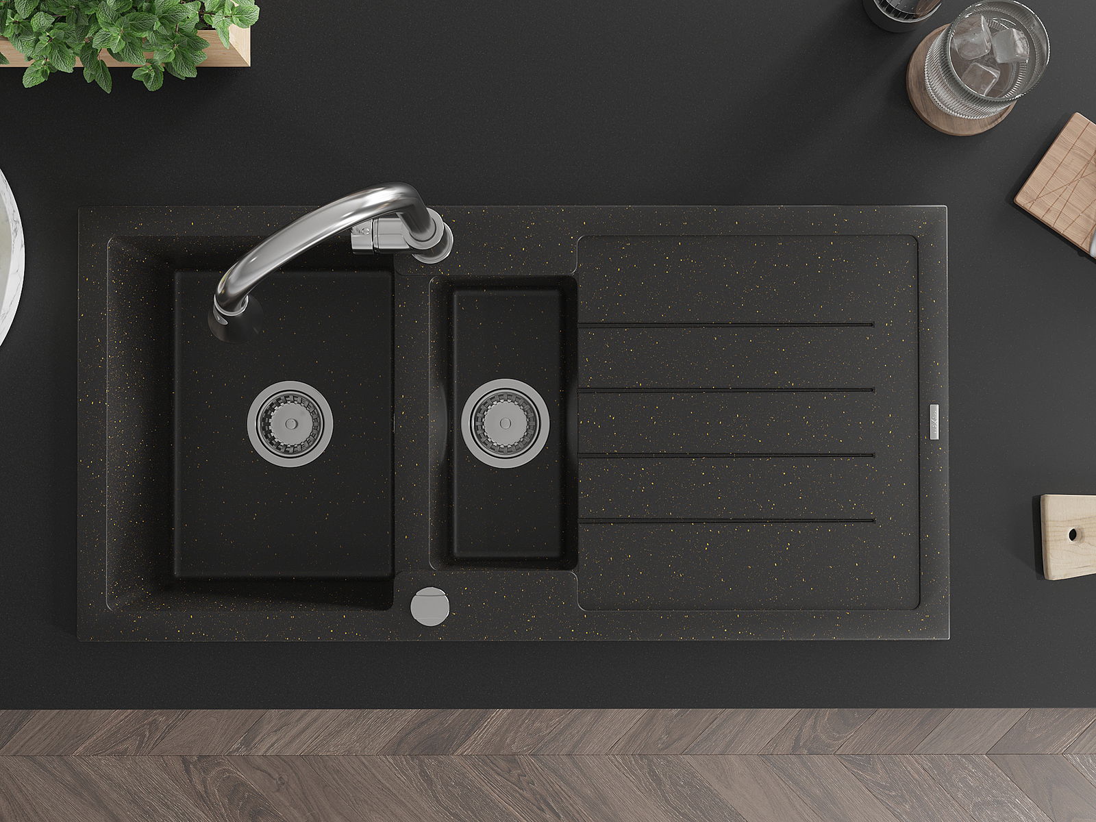 Mexen Andres νεροχύτης γρανίτης 1,5-θάλαμος με στραγγιστήρα και μπαταρία