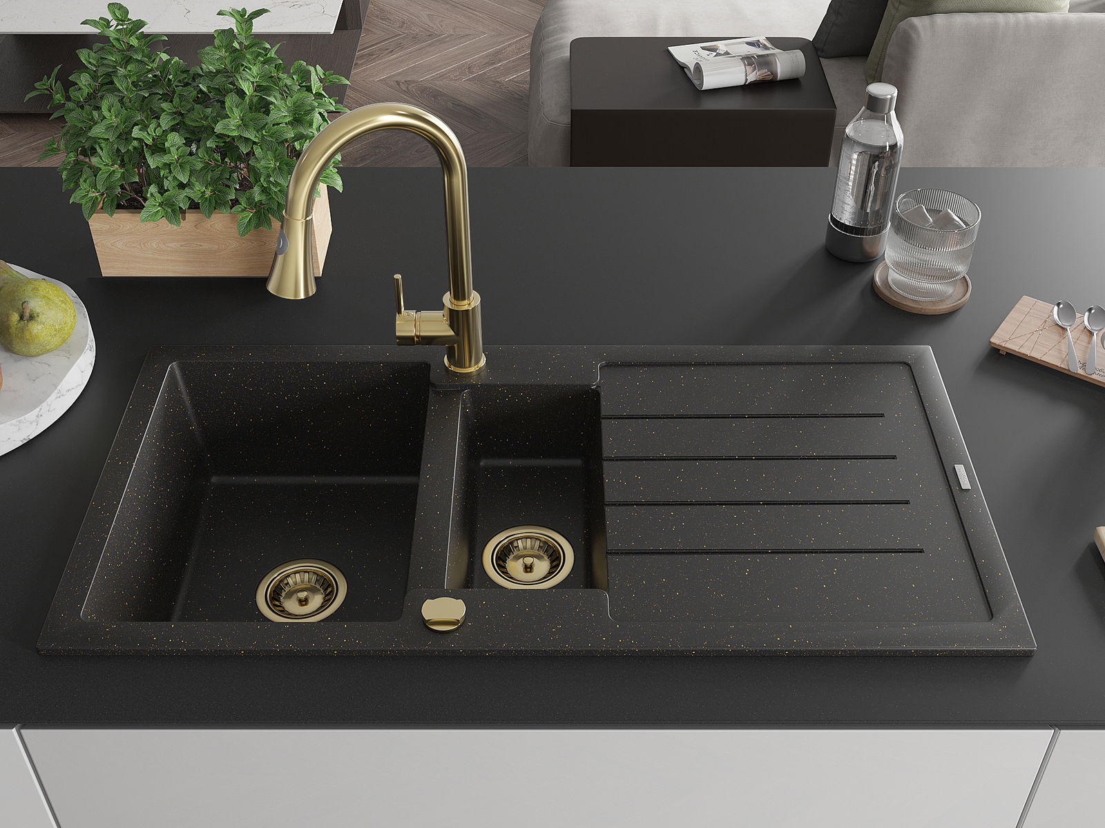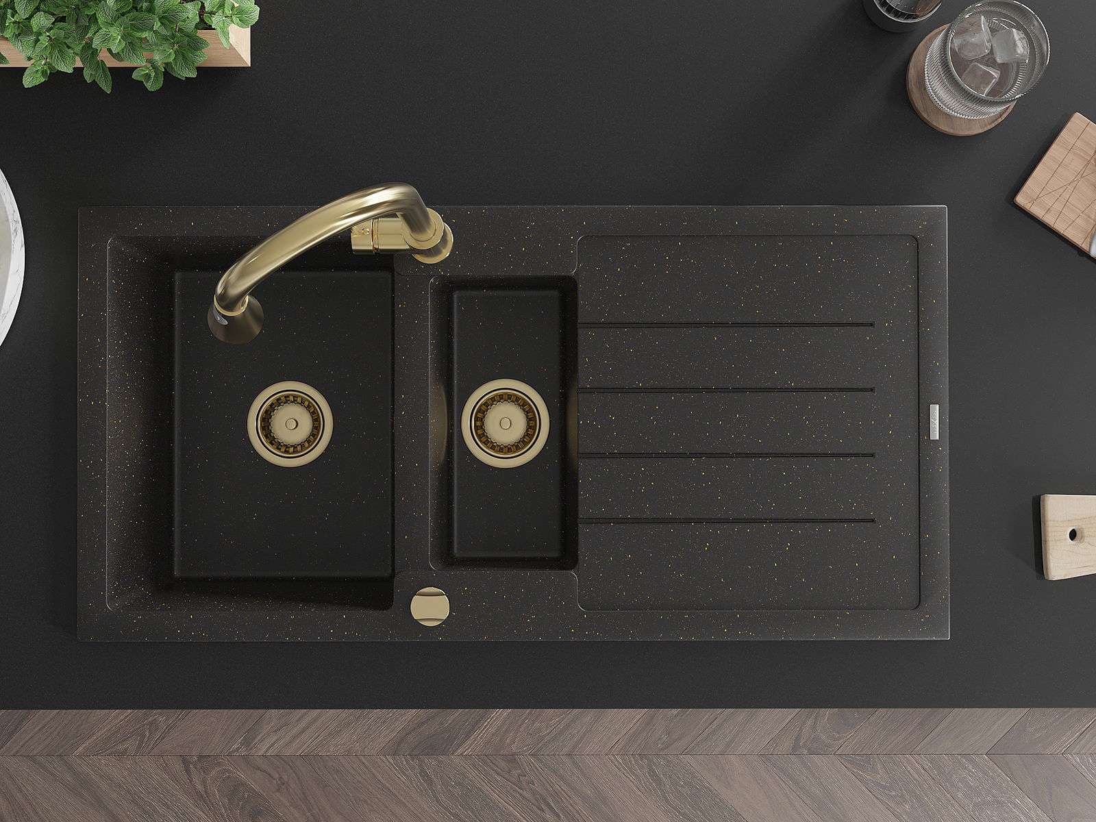 Mexen Andres νεροχύτης γρανίτης 1,5 θάλαμος με δίσκο αποστράγγισης και