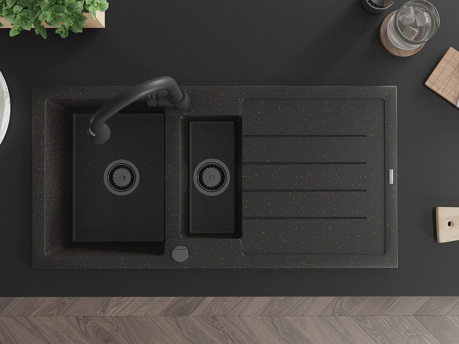 Mexen Andres νεροχύτης γρανίτης 1,5 διαμερισμάτων με στραγγιστήρα και