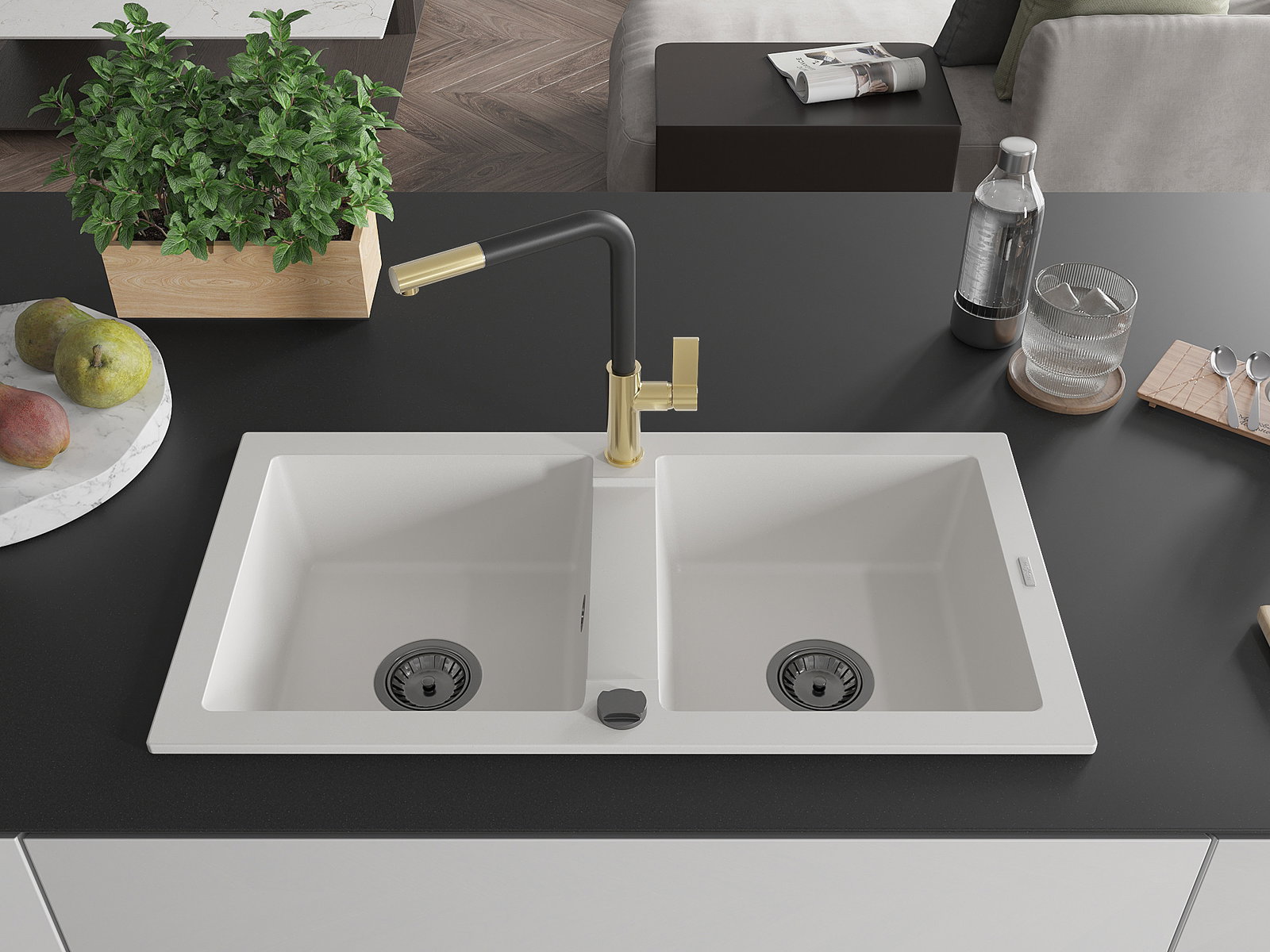 Mexen Mario νεροχύτης γρανιτένιος 2-διαμερίσματος με βρύση κουζίνας Flora,