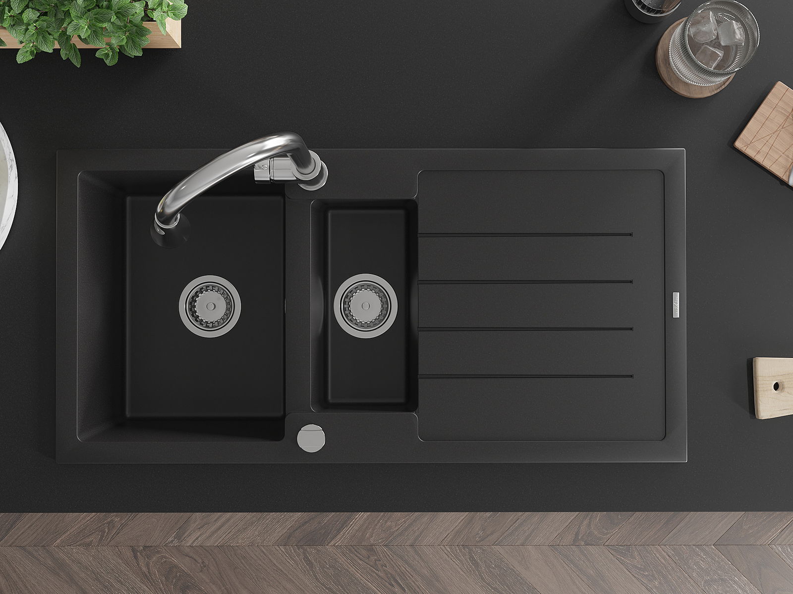 Mexen Andres νεροχύτης γρανίτης 1,5-θαλάμων με στραγγιστήρι και μπαταρία