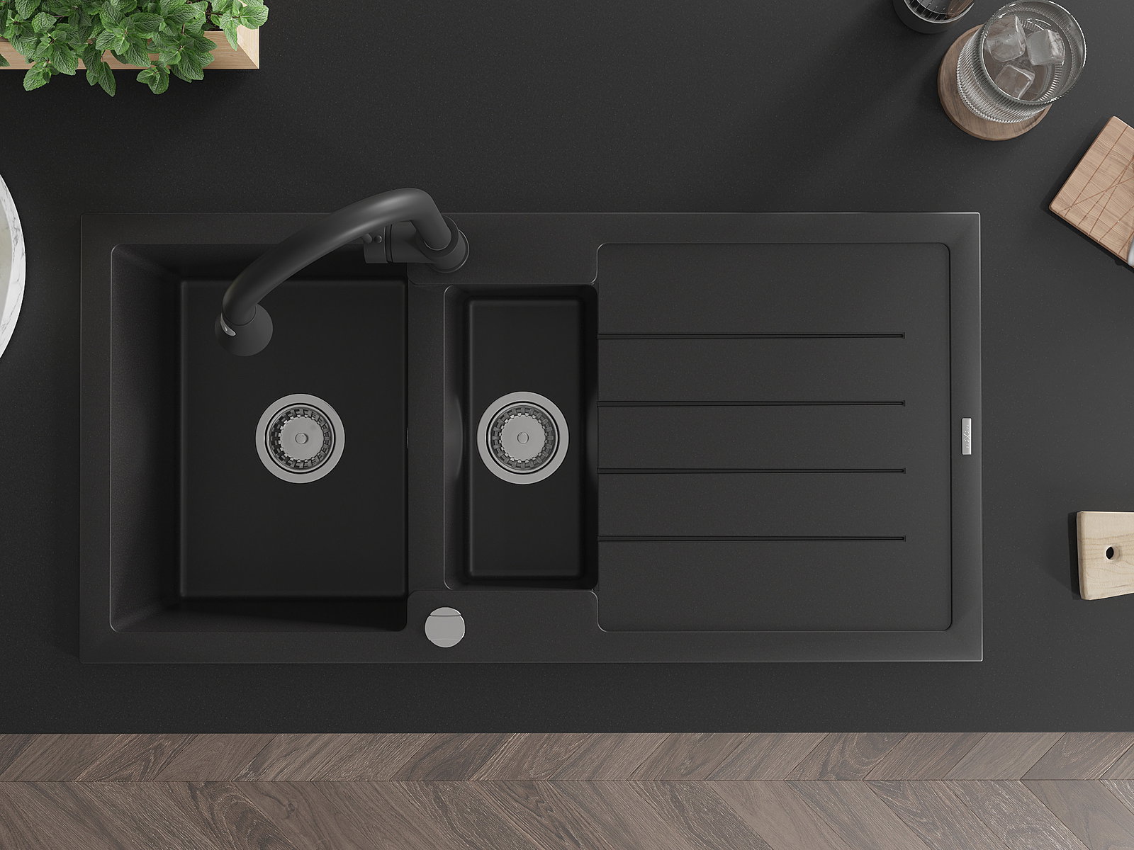 Mexen Andres νεροχύτης γρανίτης 1,5-κάμαρας με αποστράγγιση και μπαταρία