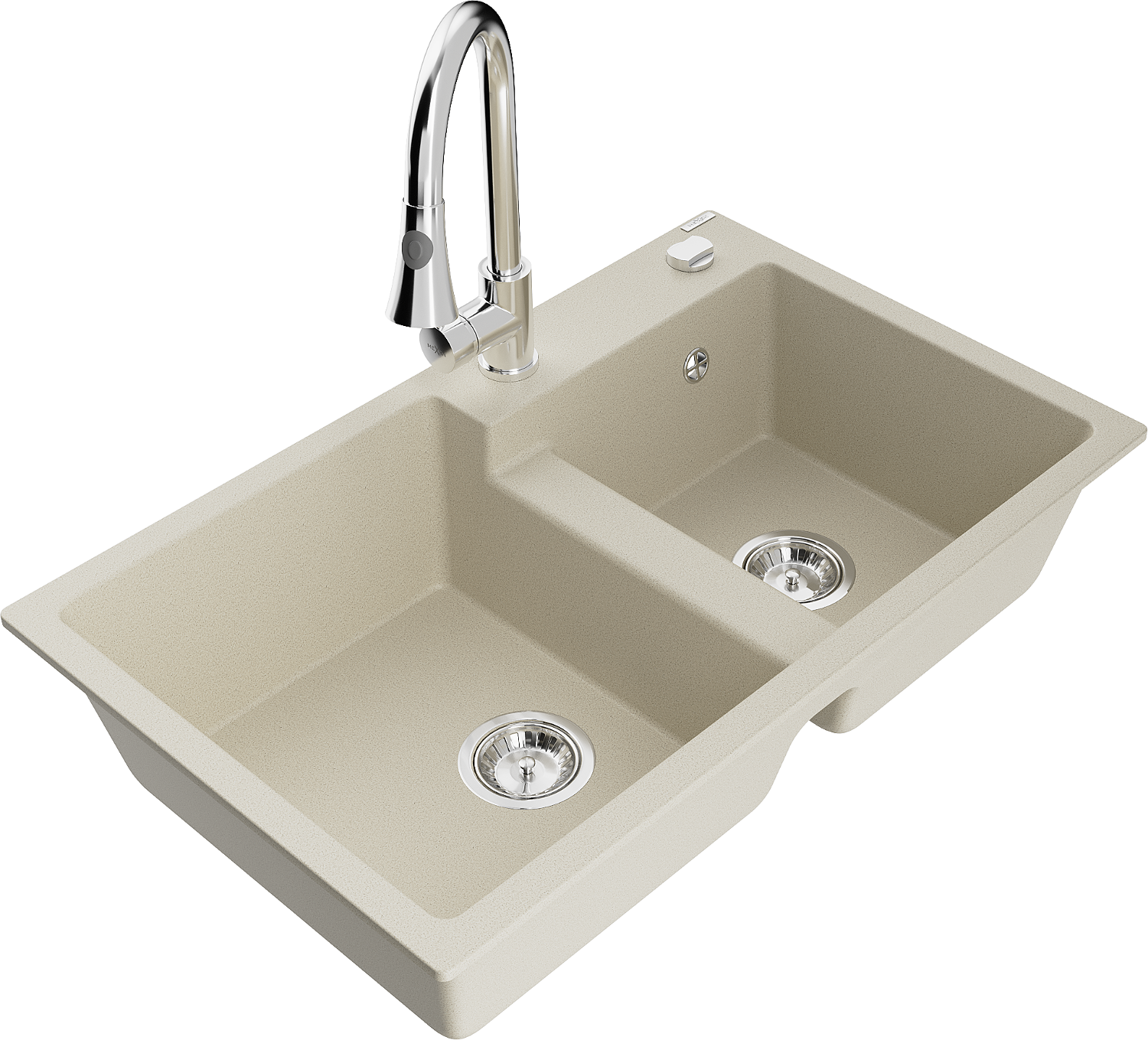 Mexen Tomas νεροχύτης γρανίτη δύο θαλάμων με μπαταρία κουζίνας Elia, μπεζ