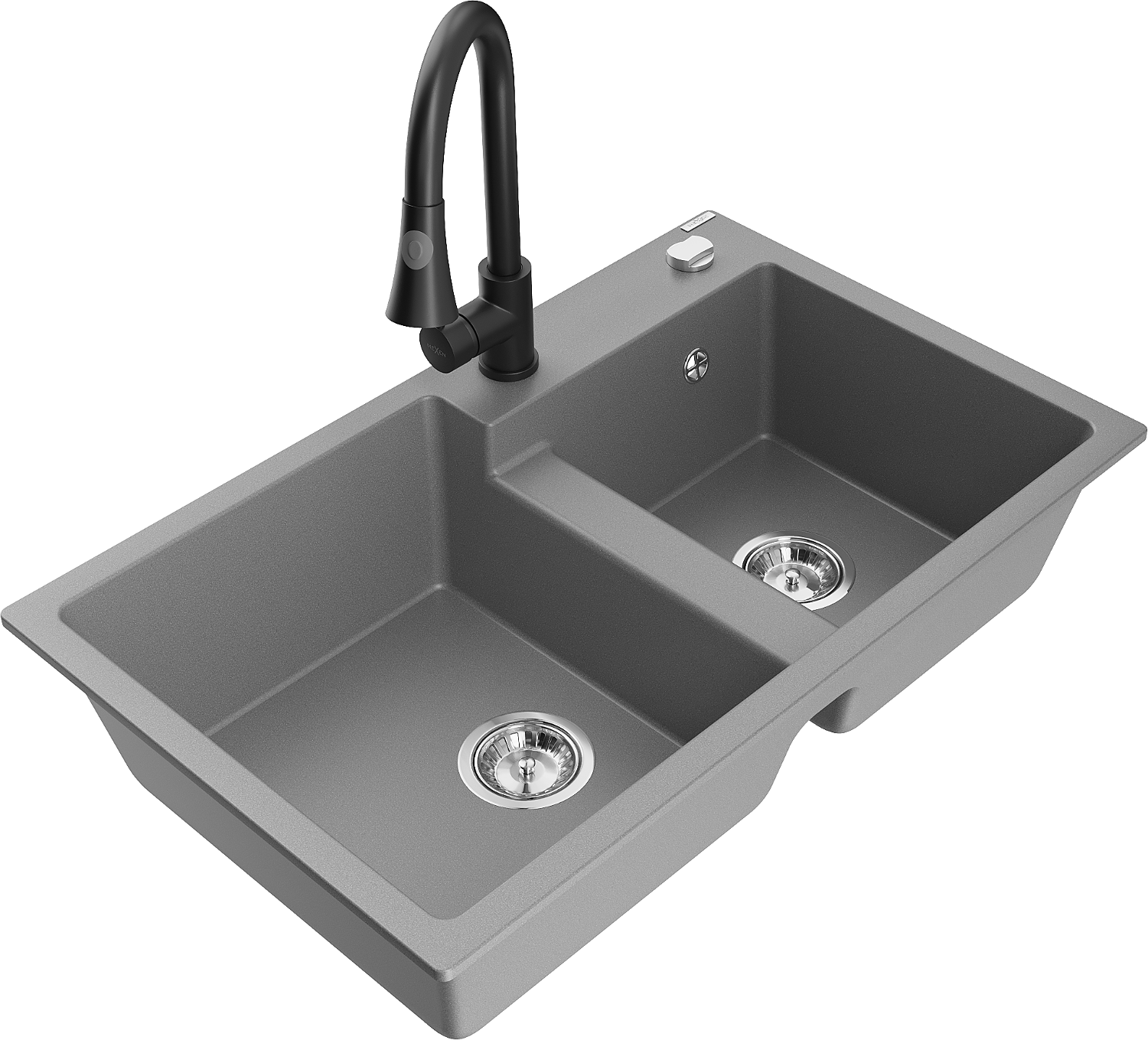 Mexen Tomas νεροχύτης γρανίτης 2-θαλάμων με μπαταρία κουζίνας Elia, γκρι