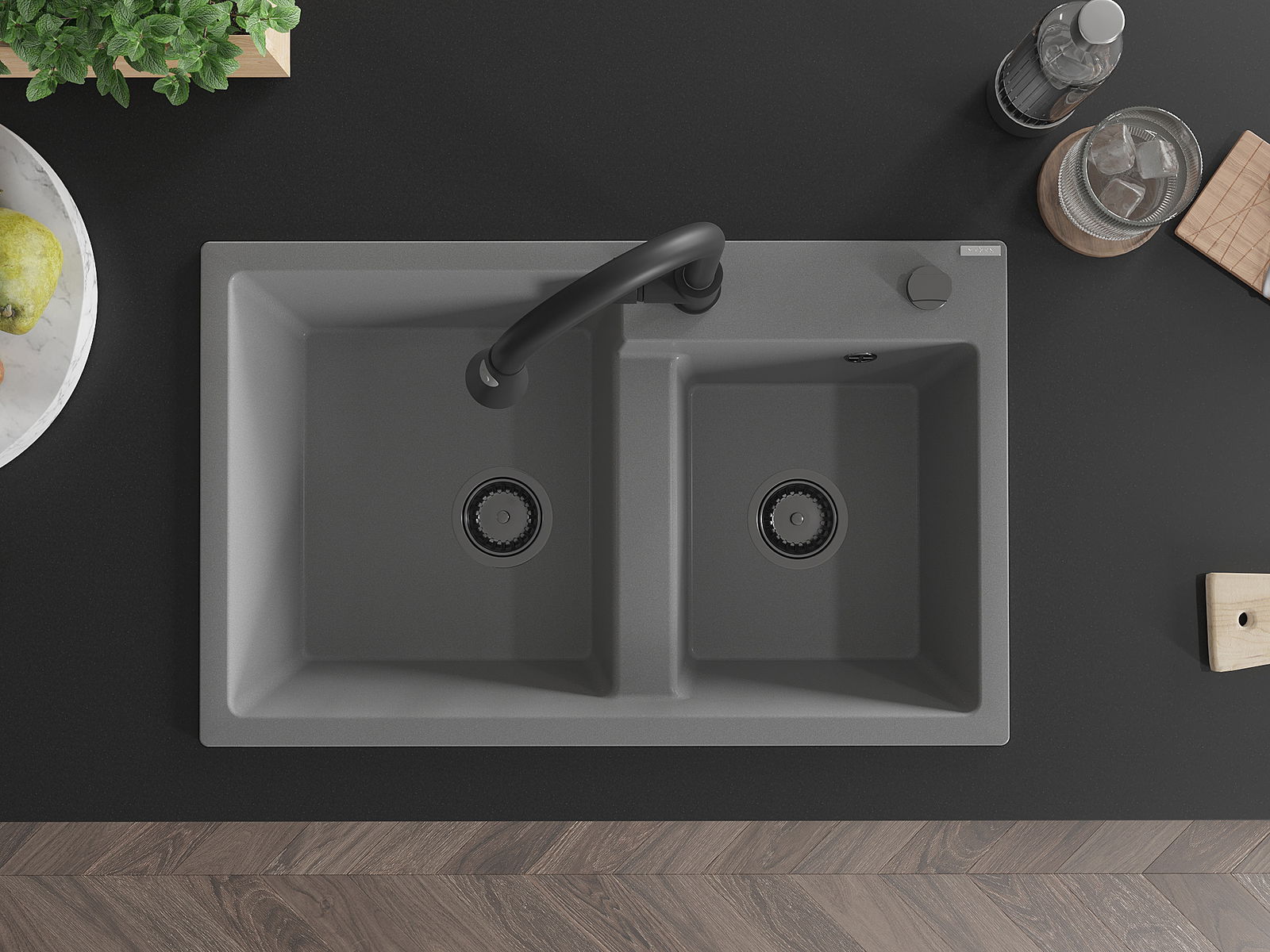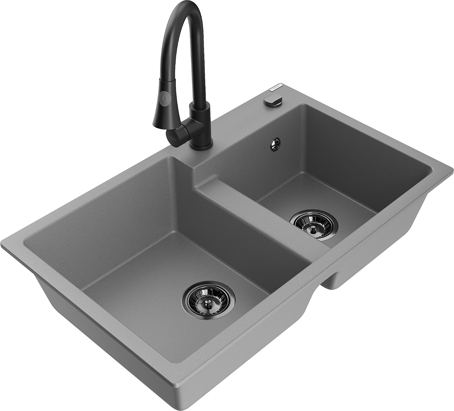 Mexen Tomas νιπτήρας γρανίτη 2 θαλάμων με μπαταρία κουζίνας Elia, γκρι