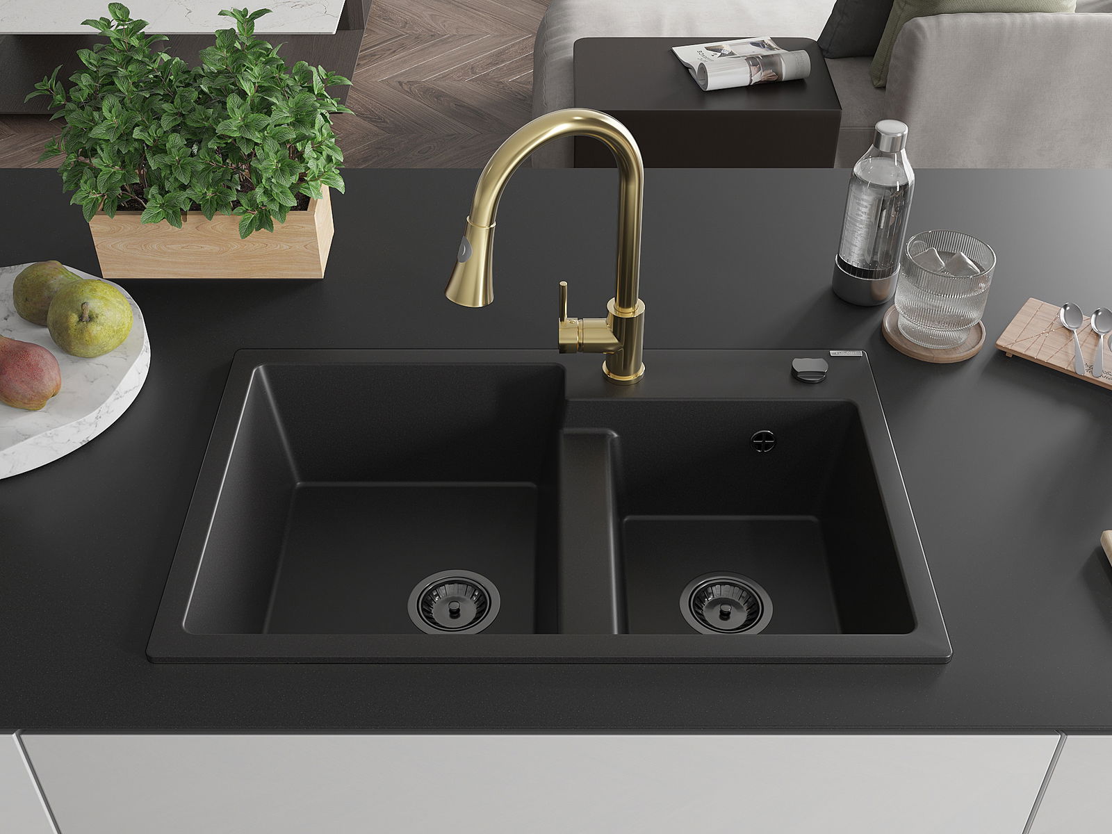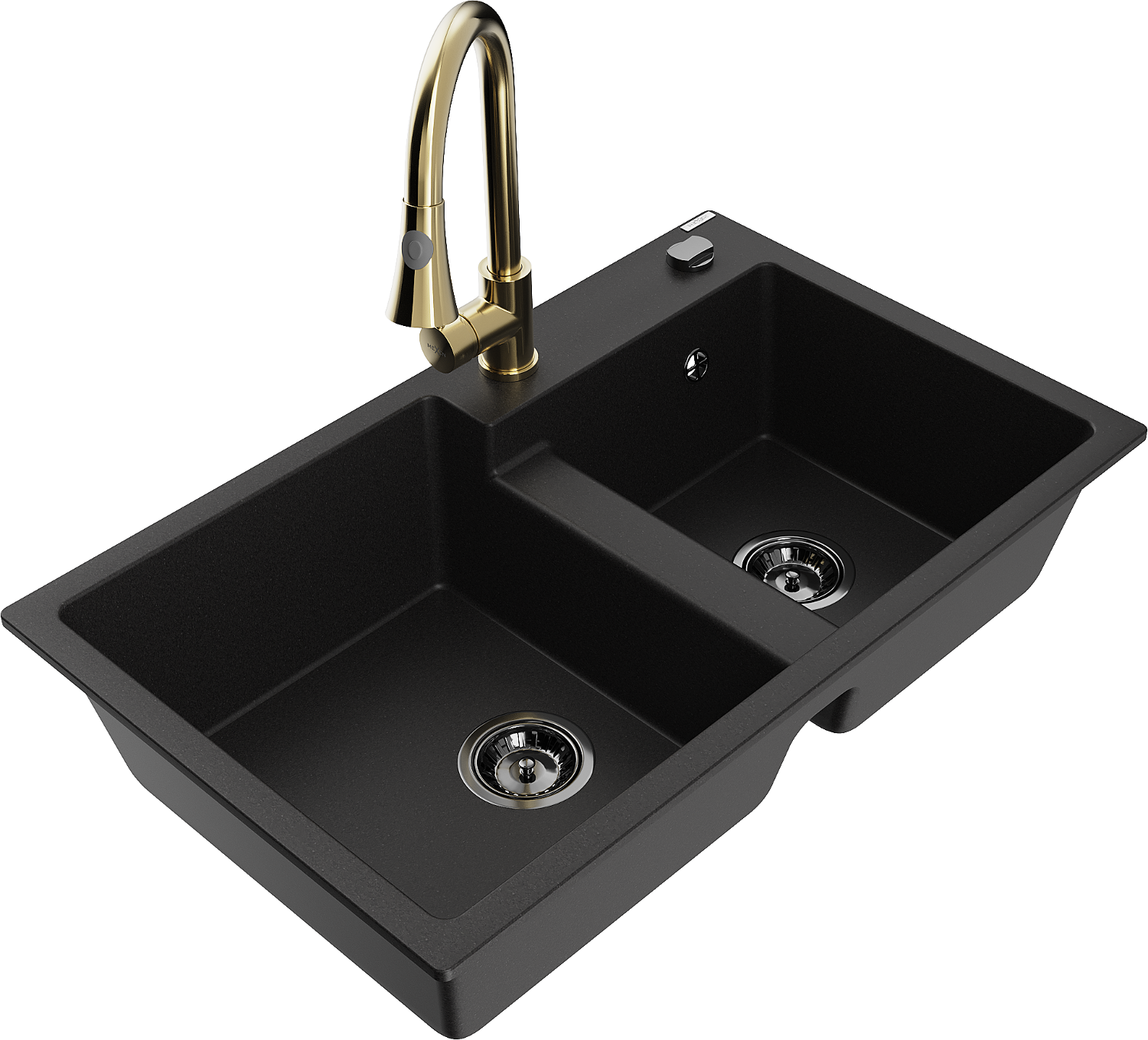 Mexen Tomas Γρανιτένιος νεροχύτης 2 θαλάμων με μπαταρία κουζίνας Elia, μαύρος