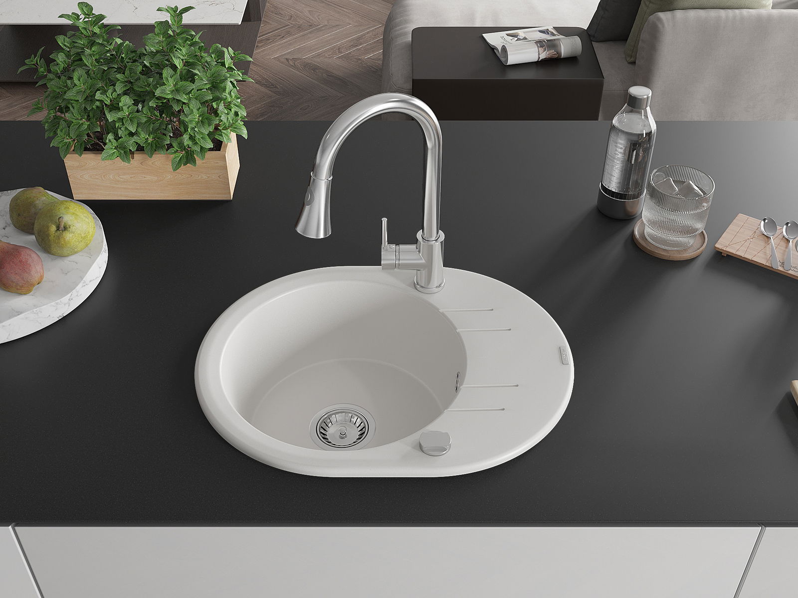 Ο νεροχύτης κατασκευάστηκε από υψηλής ποιότητας γρανίτη. Αποτελεί μια κομψή, και κυρίως πρακτική προσθήκη για κάθε κουζίνα, ανεξάρτητα από το στυλ της. Η υψηλή ποιότητα και η αντοχή του γρανίτη εξασφαλίζουν πολυετή χρήση.
