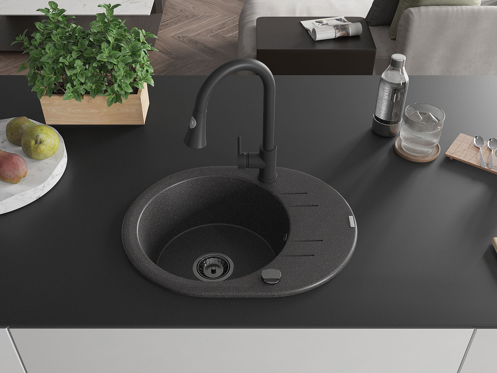 Mexen Kevin νεροχύτης γρανίτης 1-θέσεων με αποστράγγιση και κουζίνα