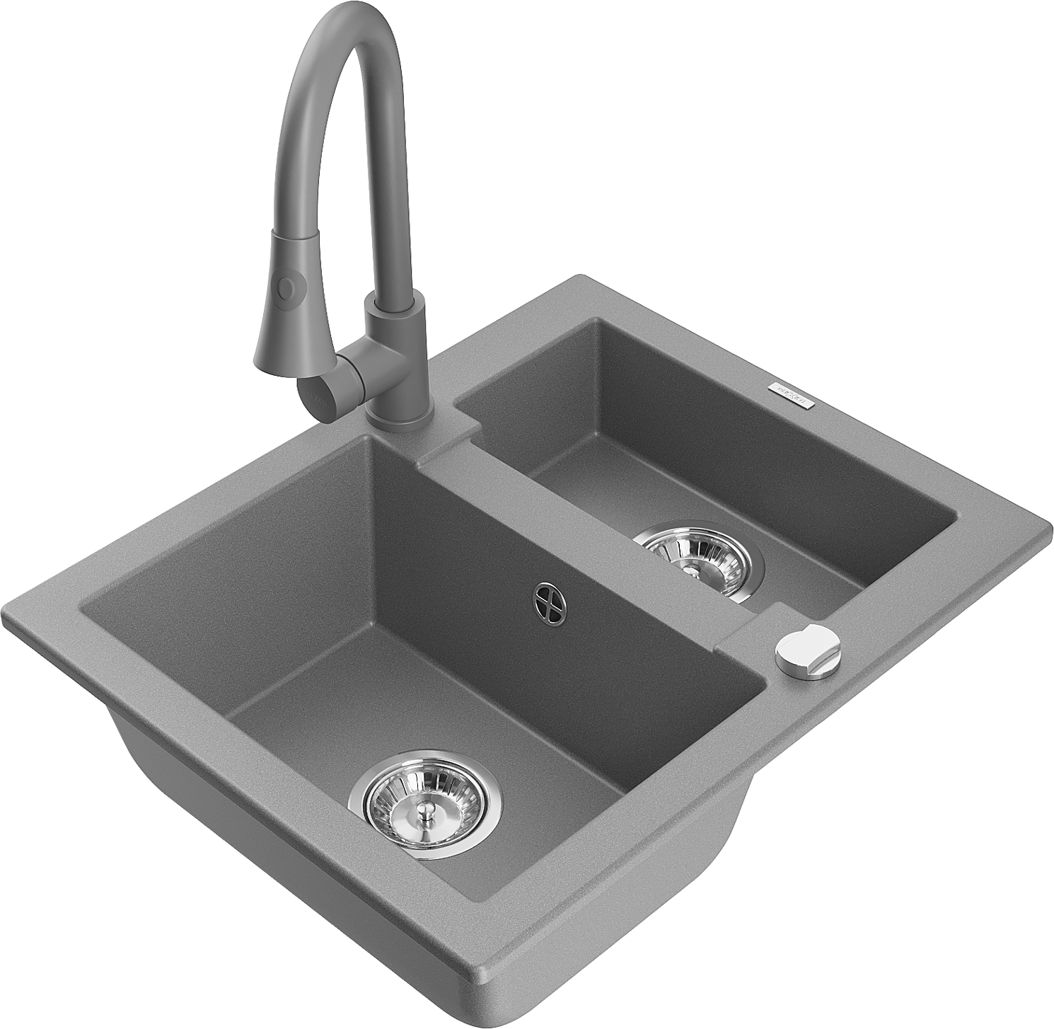 Mexen Carlos νεροχύτης γρανίτης 1,5 θαλάμων με μπαταρία κουζίνας Elia, γκρι