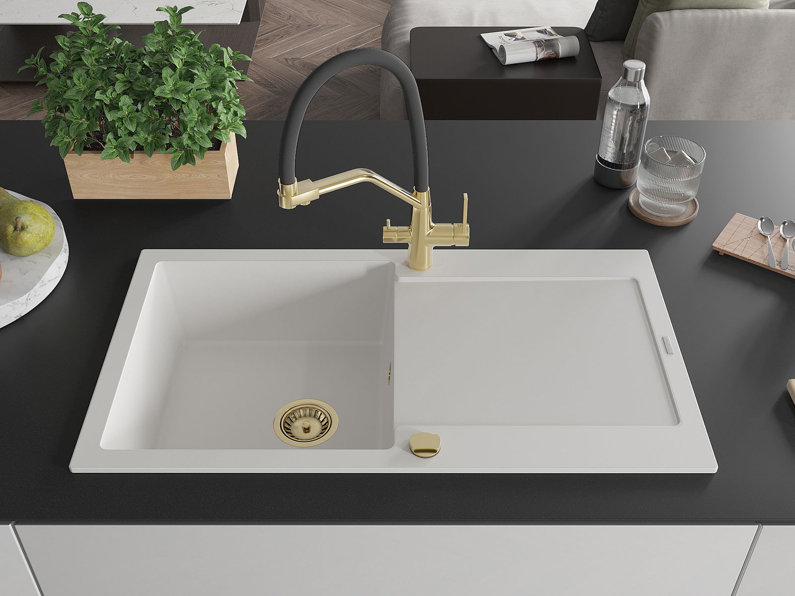 Ο νεροχύτης κατασκευάστηκε από υψηλής ποιότητας γρανίτη. Αποτελεί μια κομψή, και κυρίως πρακτική προσθήκη για κάθε κουζίνα, ανεξάρτητα από το στυλ της. Η υψηλή ποιότητα και η αντοχή του γρανίτη εξασφαλίζουν πολυετή χρήση.