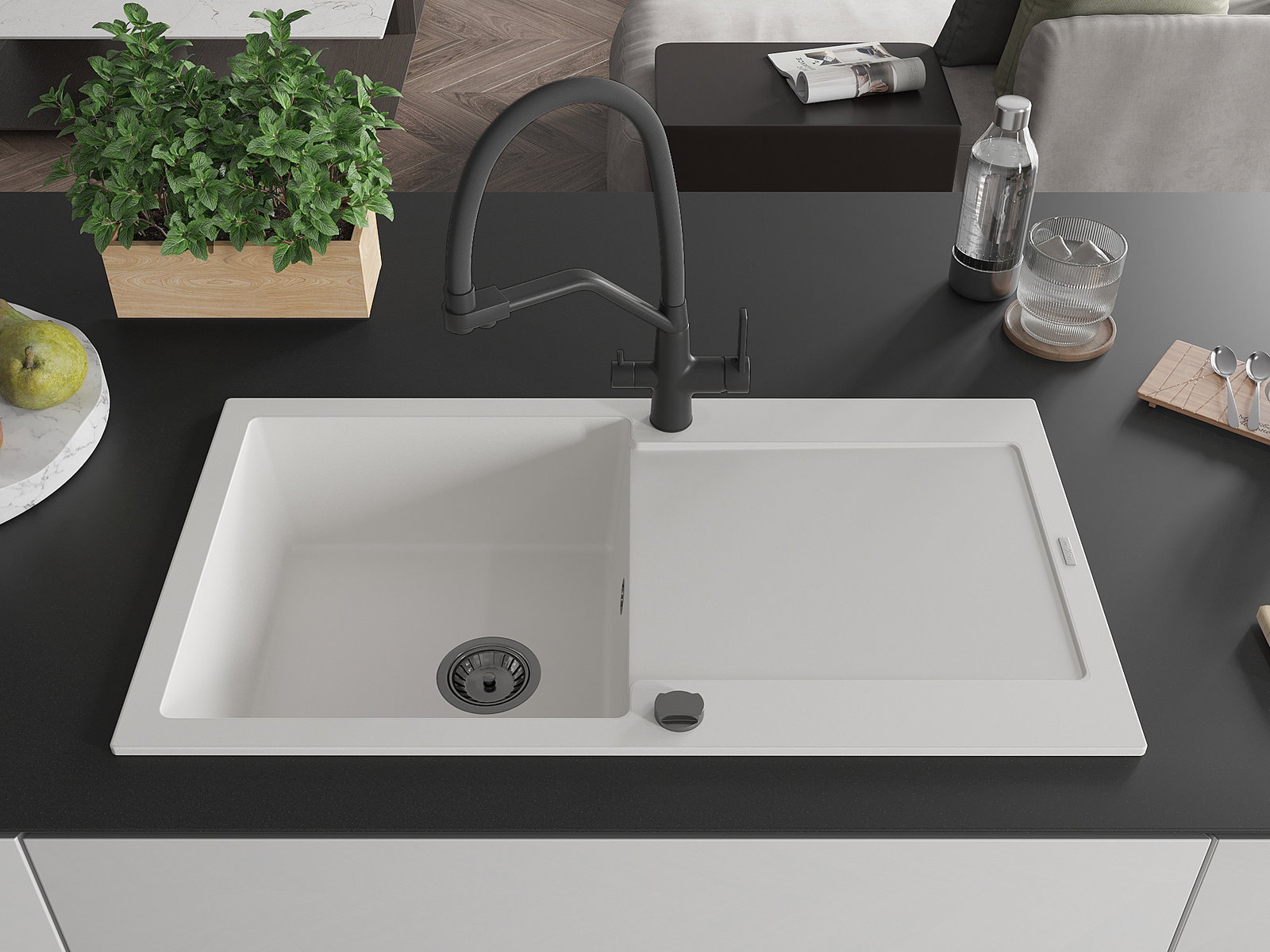 Ο νεροχύτης κατασκευάστηκε από υψηλής ποιότητας γρανίτη. Αποτελεί μια κομψή, και κυρίως πρακτική προσθήκη για κάθε κουζίνα, ανεξάρτητα από το στυλ της. Η υψηλή ποιότητα και η αντοχή του γρανίτη εξασφαλίζουν πολυετή χρήση.