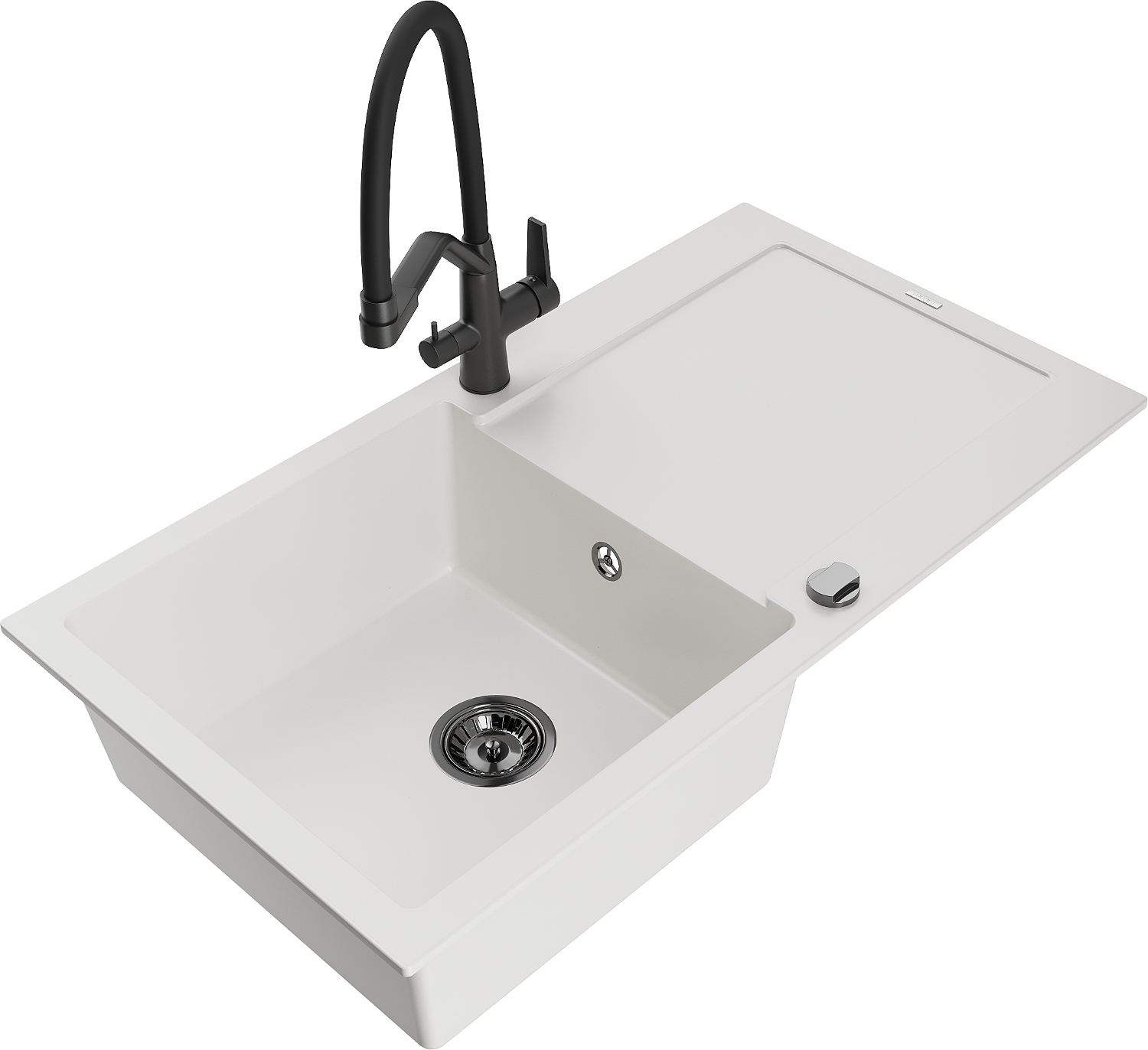Mexen Leo νεροχύτης γρανίτη 1-θάλαμος με στραγγιστήρα και μπαταρία