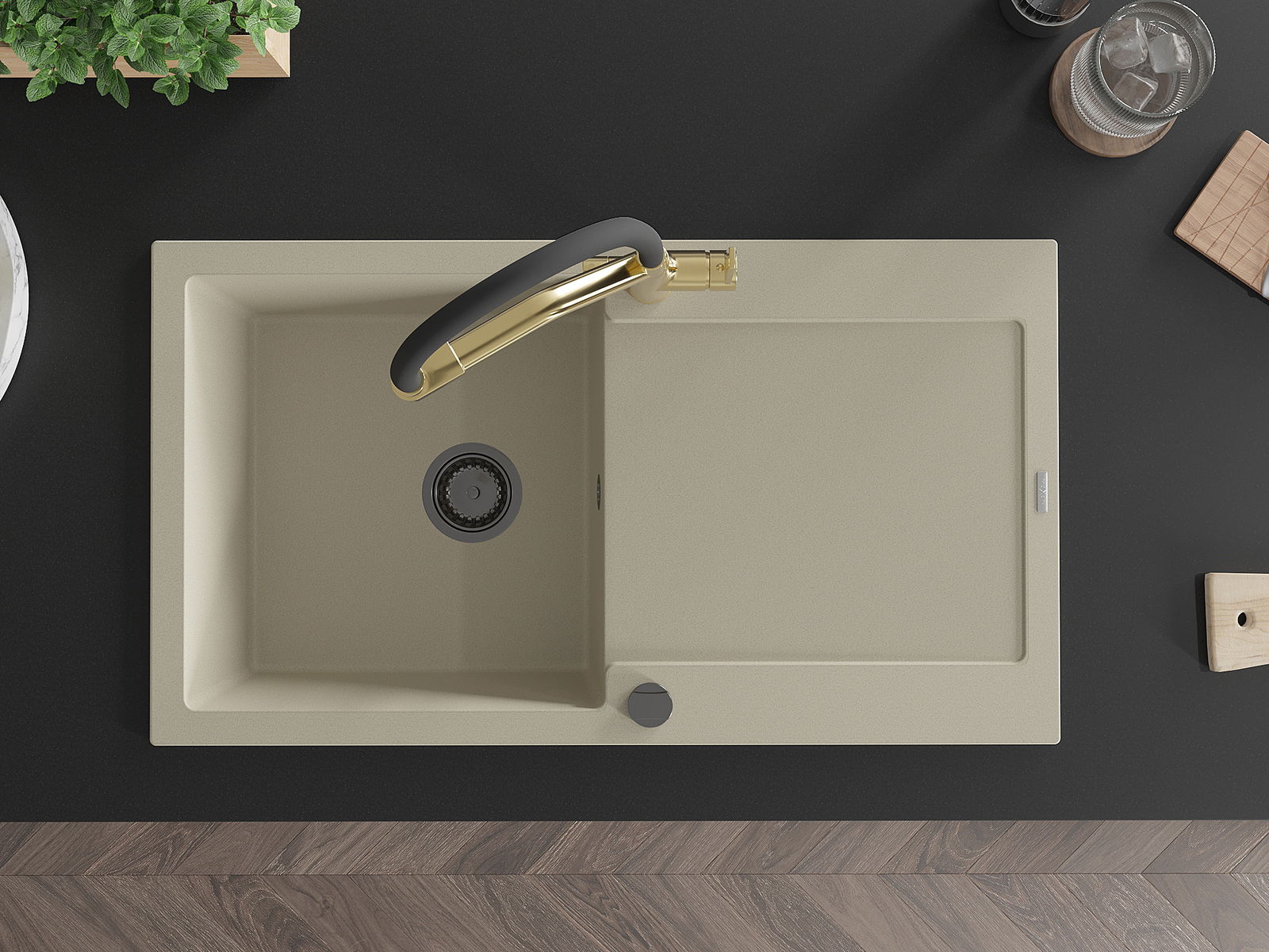 Mexen Leo νεροχύτης γρανίτης μονού θαλάμου με σταγόνα και μπαταρία