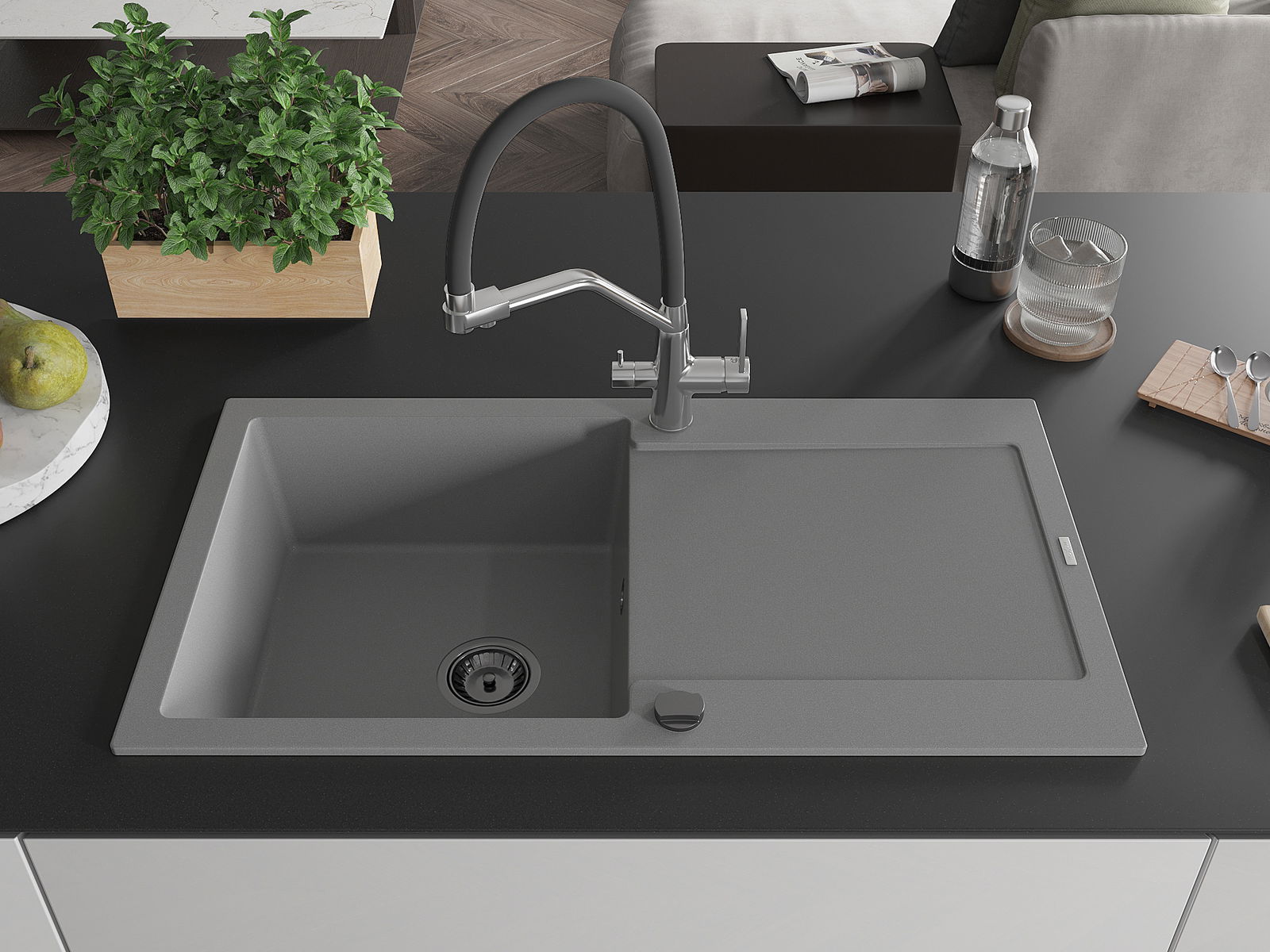 Ο νεροχύτης κατασκευάστηκε από υψηλής ποιότητας γρανίτη. Αποτελεί μια κομψή, και κυρίως πρακτική προσθήκη για κάθε κουζίνα, ανεξάρτητα από το στυλ της. Η υψηλή ποιότητα και η αντοχή του γρανίτη εξασφαλίζουν πολυετή χρήση.
