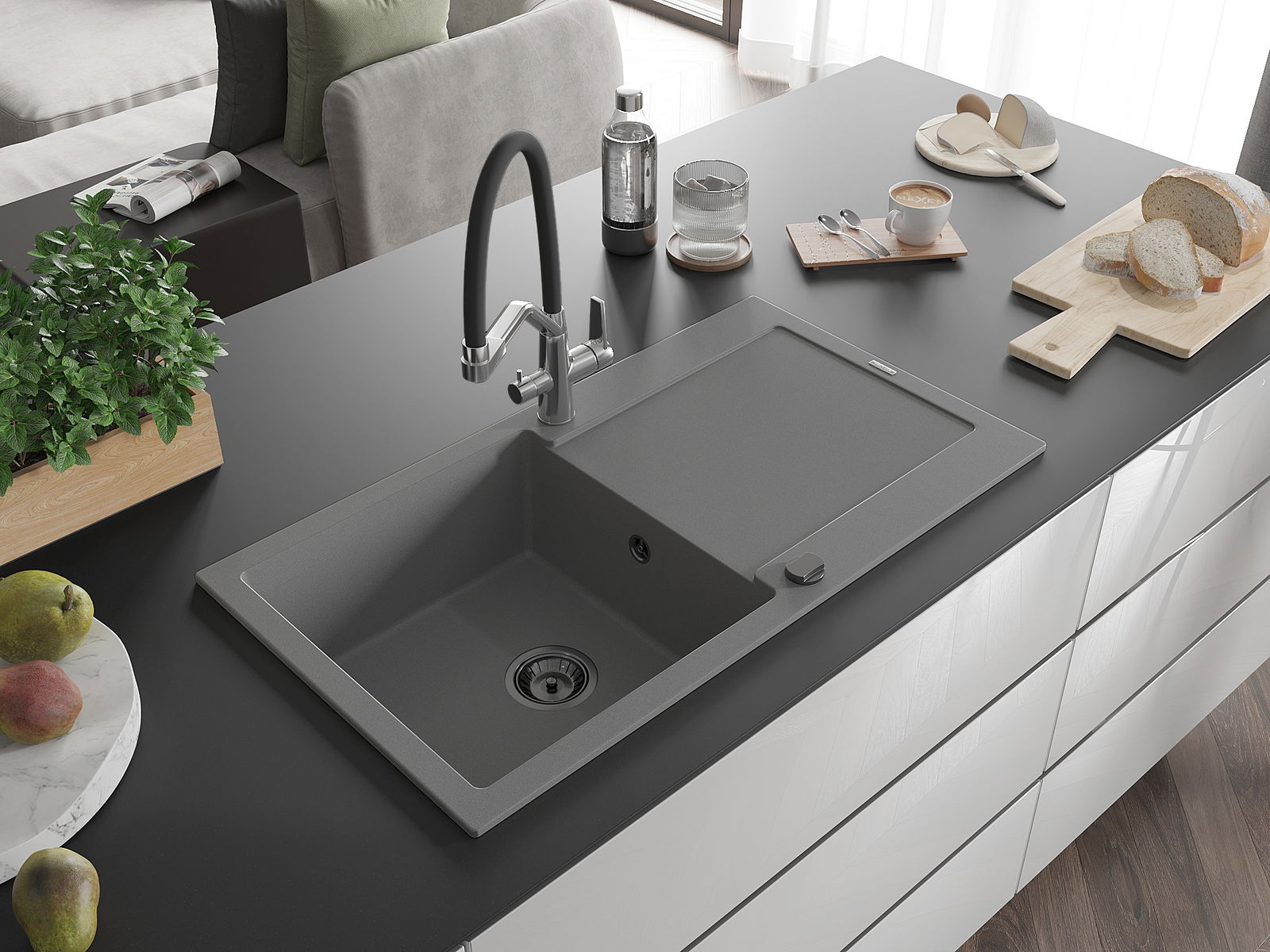 Mexen Leo νεροχύτης γρανίτης 1 θάλαμος με αποστράγγιση και βρύση κουζίνας
