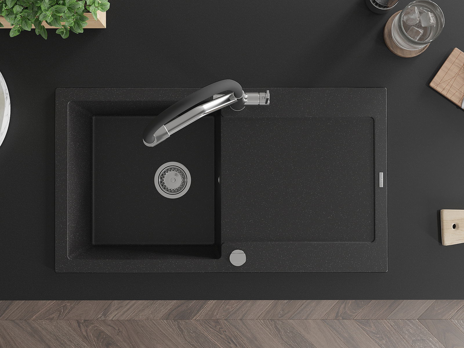 Mexen Leo νεροχύτης από γρανίτη 1-διαμερισμάτων με στραγγιστήρα και