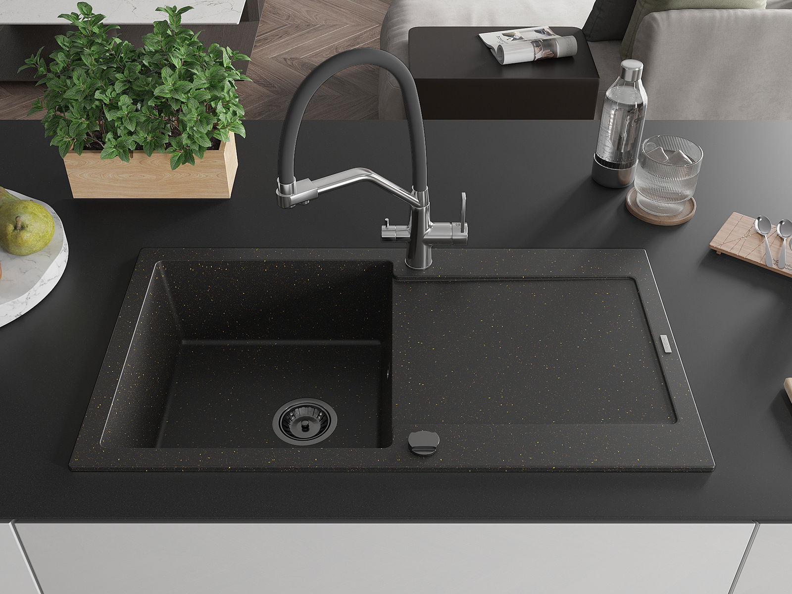 Ο νεροχύτης κατασκευάστηκε από υψηλής ποιότητας γρανίτη. Αποτελεί μια κομψή, και κυρίως πρακτική προσθήκη για κάθε κουζίνα, ανεξάρτητα από το στυλ της. Η υψηλή ποιότητα και η αντοχή του γρανίτη εξασφαλίζουν πολυετή χρήση.