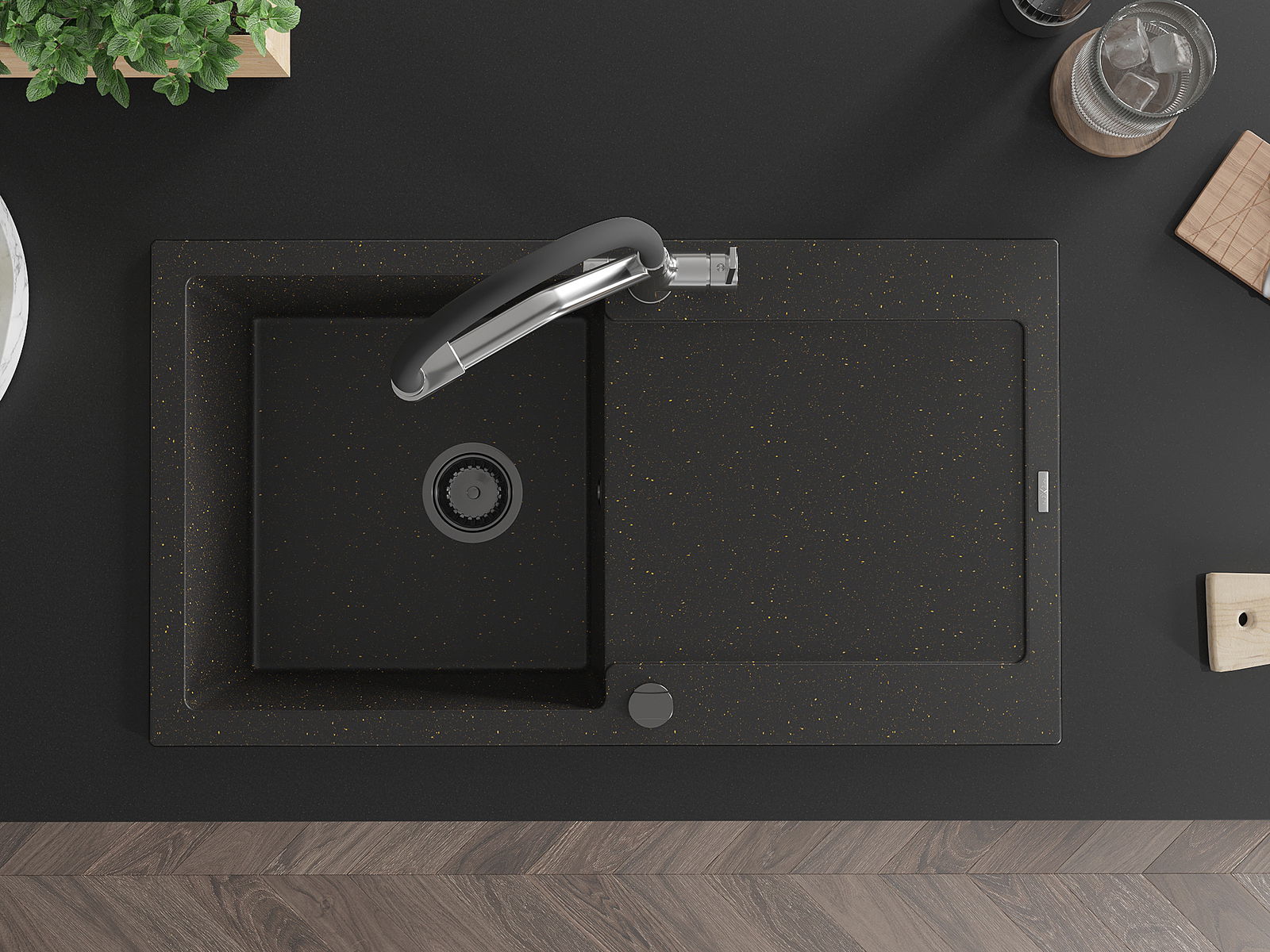 Mexen Leo νεροχύτης γρανίτης 1-θαλάμου με αποστράγγιση και μπαταρία
